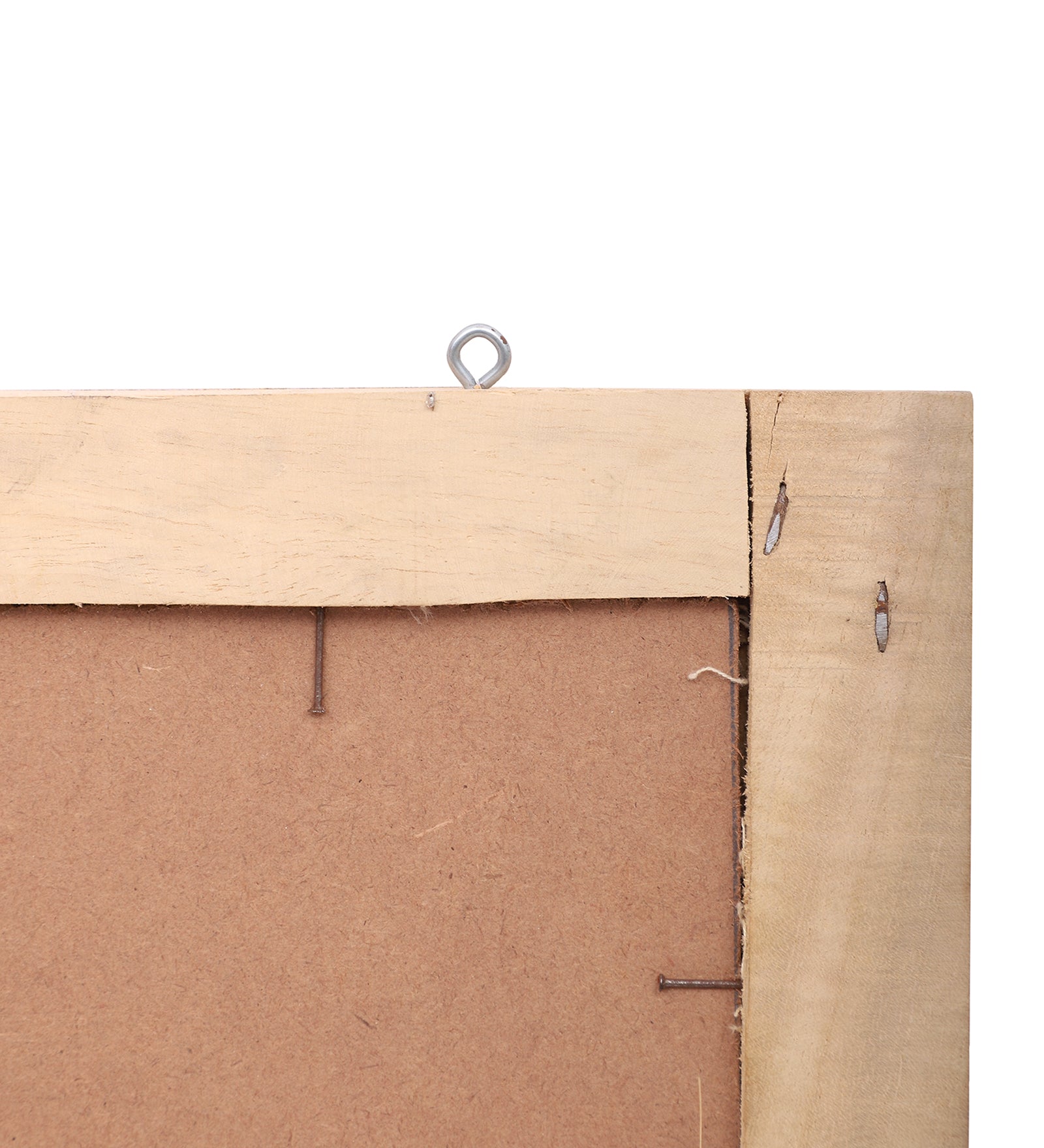 This handmade medium-sized rectangular bamboo wall hanging is made by traditional craftsmen using various layers of bamboo. Consisting of a cardboard base the wall hanging is topped with a wooden frame. The wall hanging has a background made of a handwoven bamboo mat.