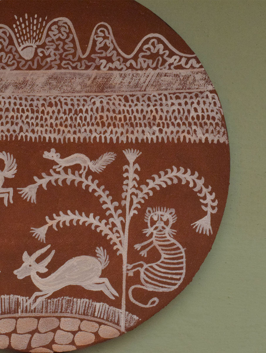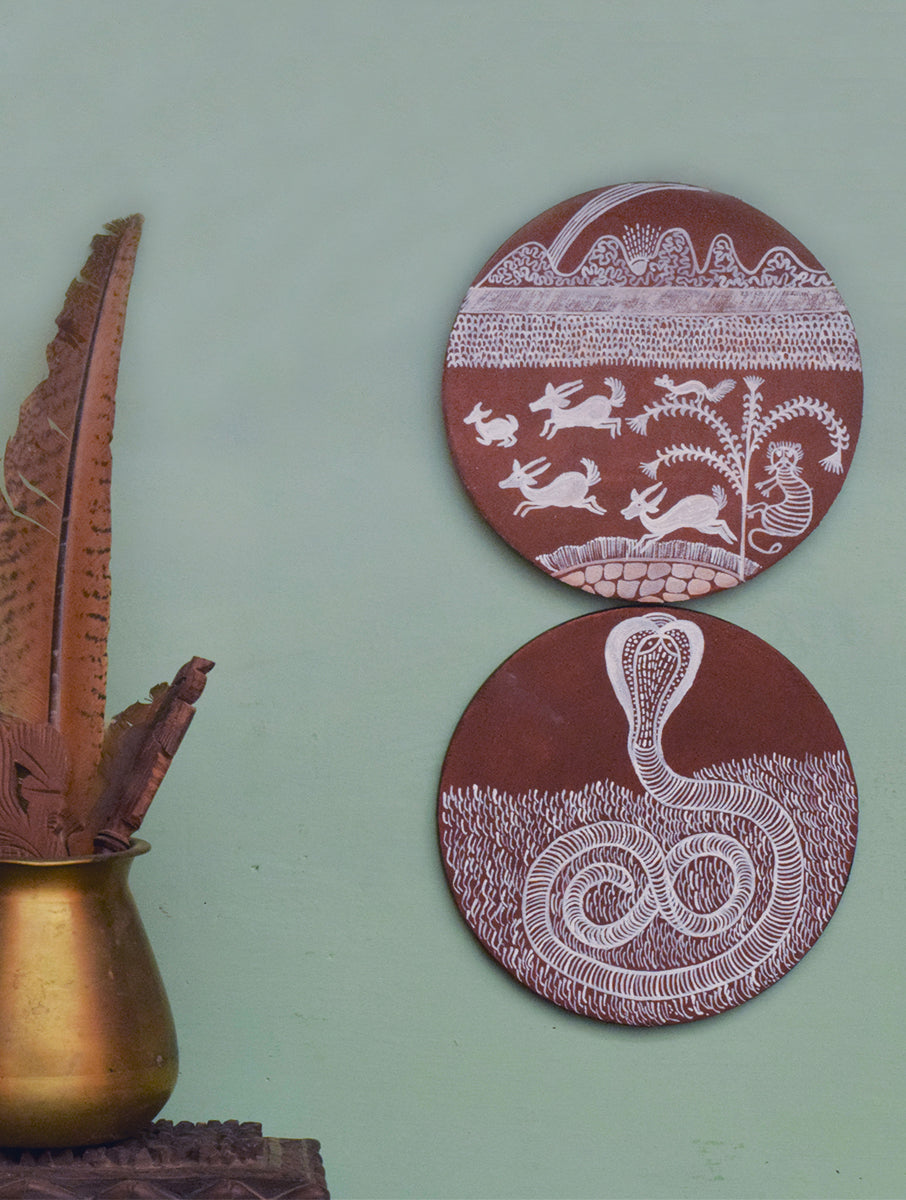"Bhumi" by Ba No Batwo is a handcrafted collection of warli wallart handpainted and handcrafted with canvas on metal plates.