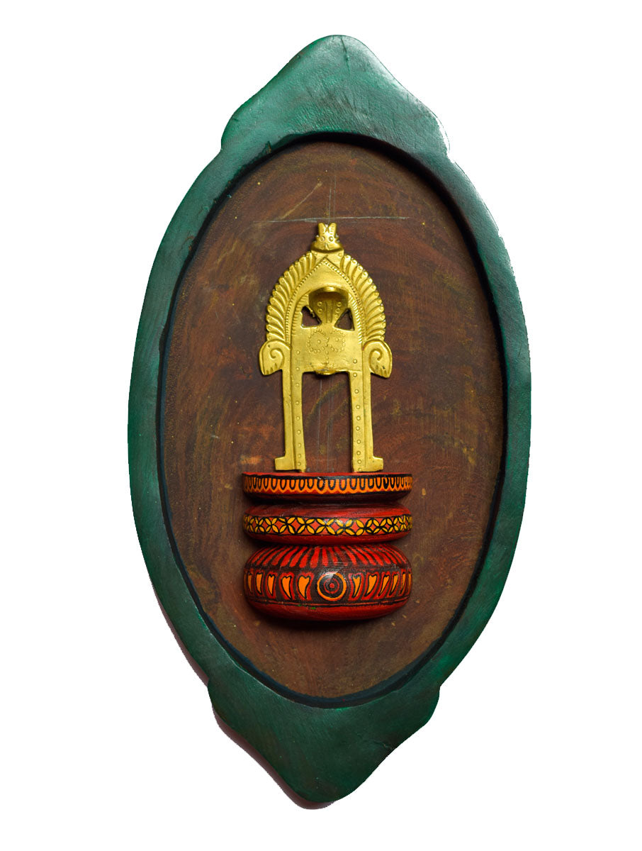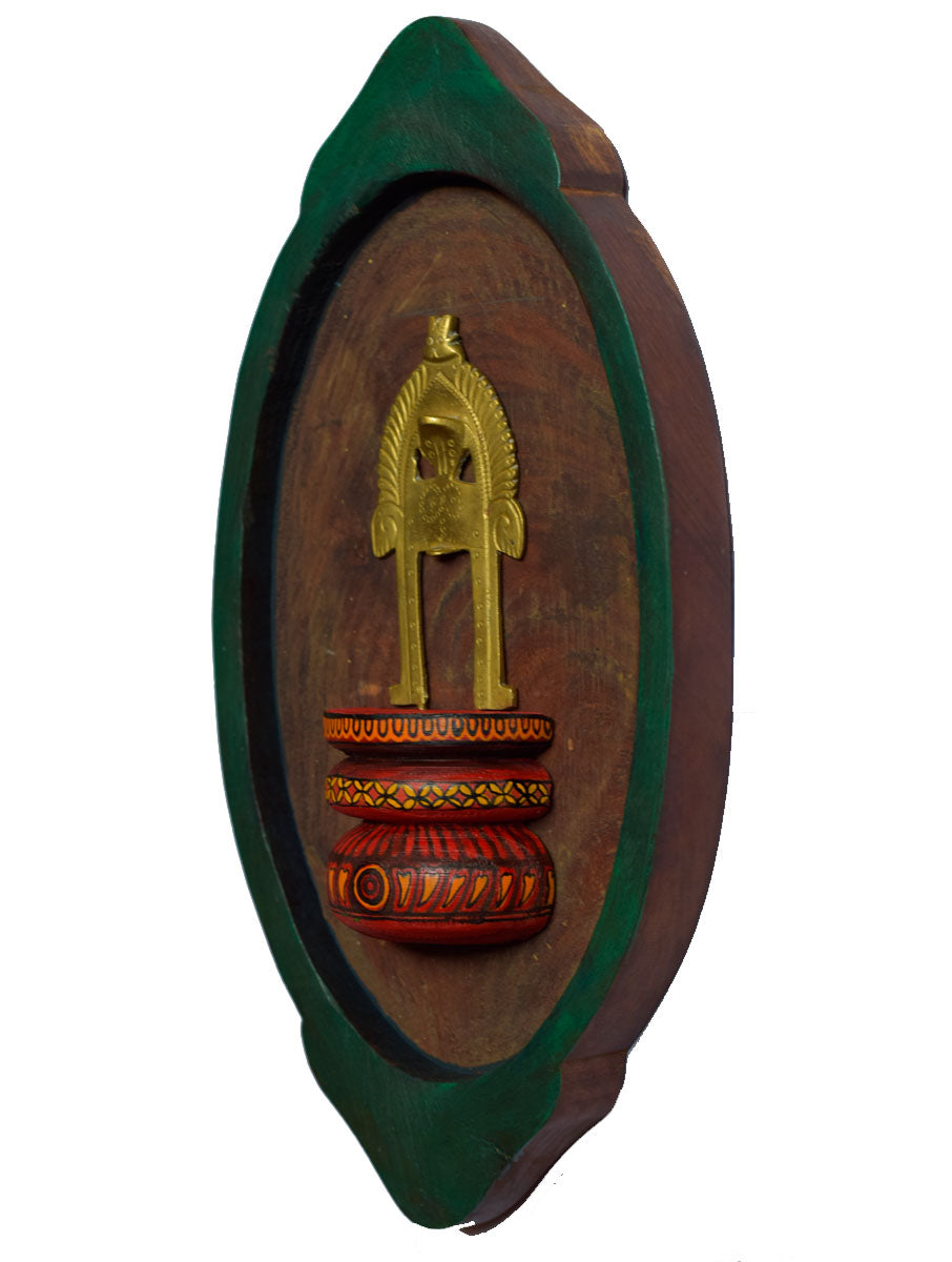 Handpaint Vintage Wooden Tray Wallart With Brass Ornament