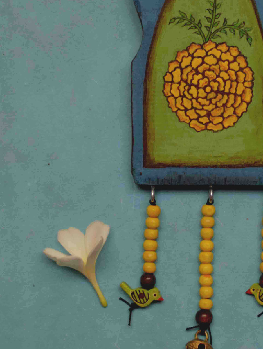 Material Repurposed Teak wood, Brass Ghungroo, wooden beads