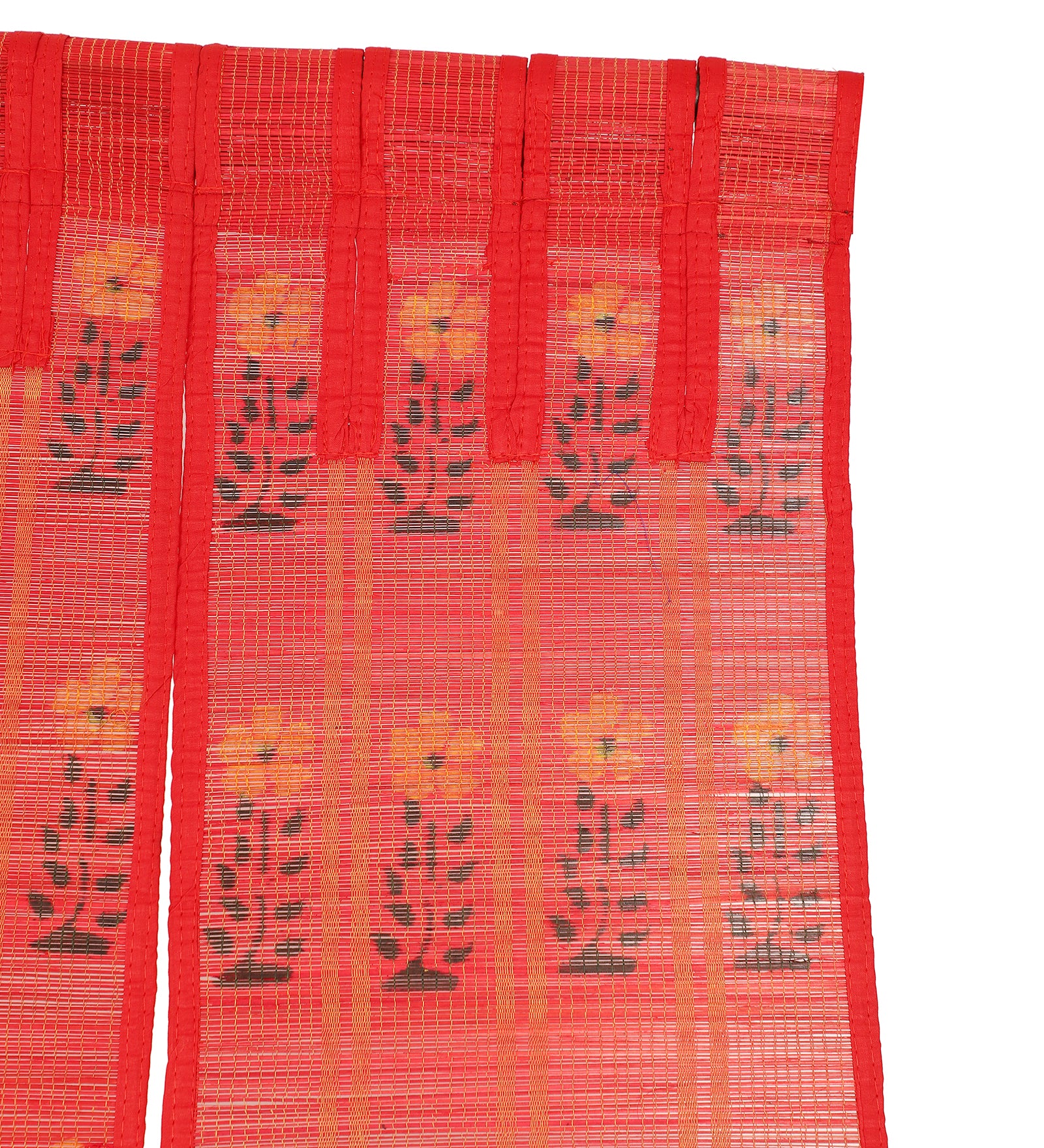 Handmade bamboo mats, stitched into curtains with bamboo rings.