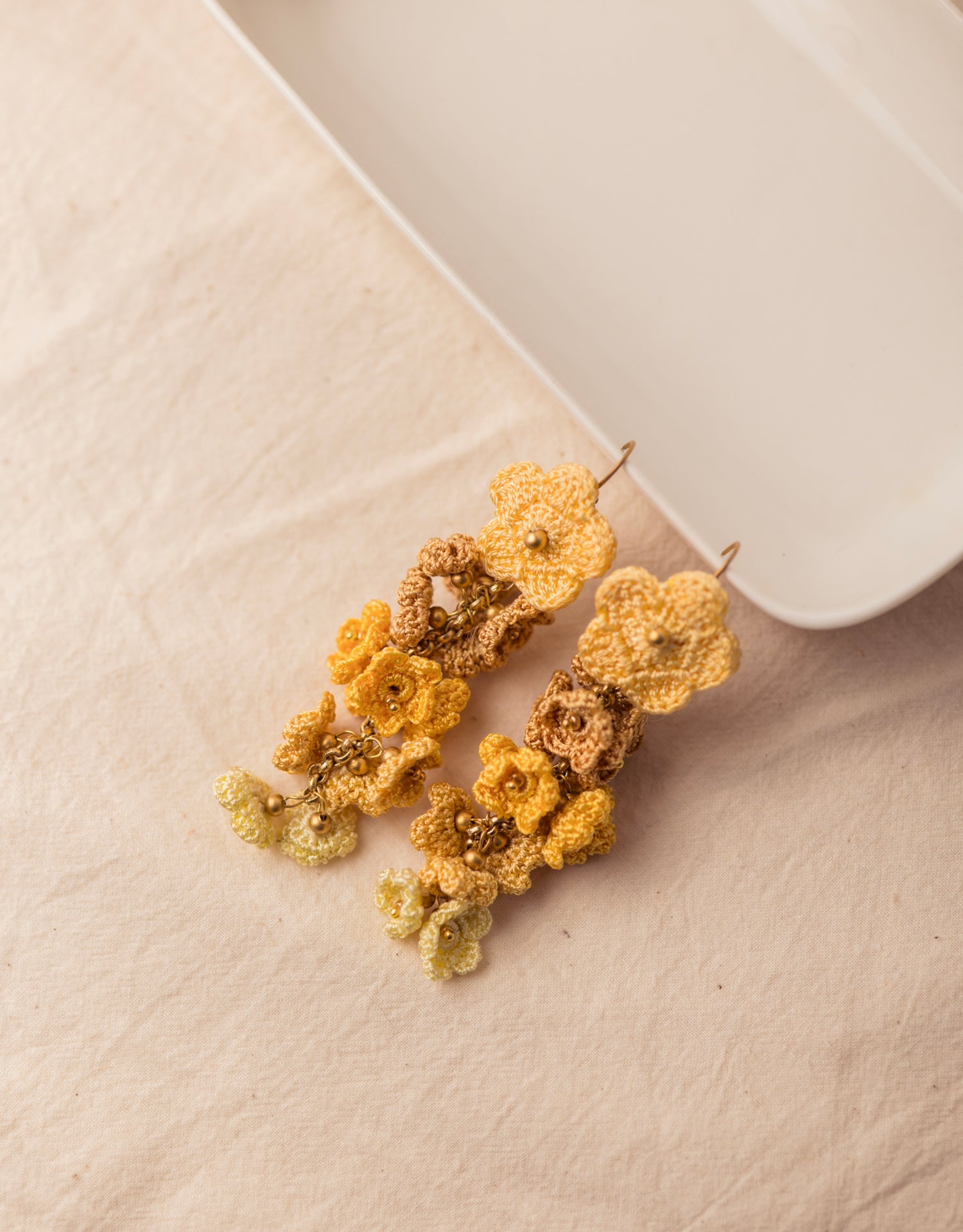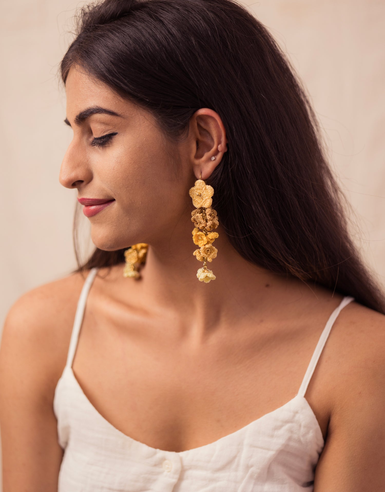 Discover our captivating collection of exquisite handcrocheted cluster drop earrings, a stunning blend of artistry and elegance.