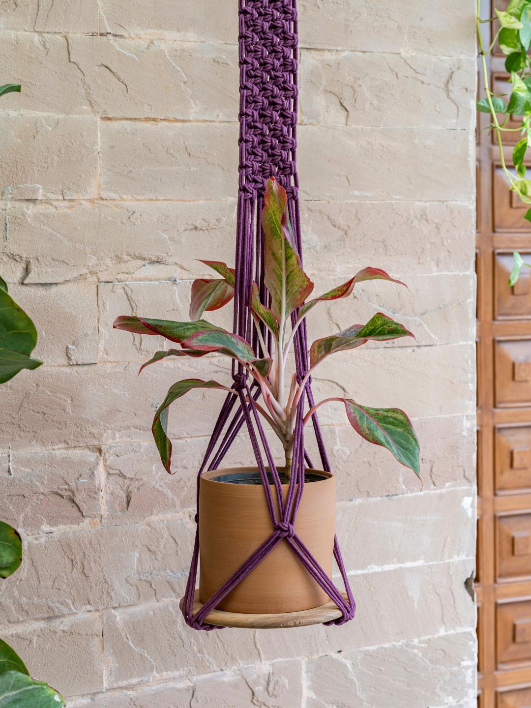 One O Eight Knots Burgundy Classic Wide Hand-Knotted 100% Cotton Plant Hanger