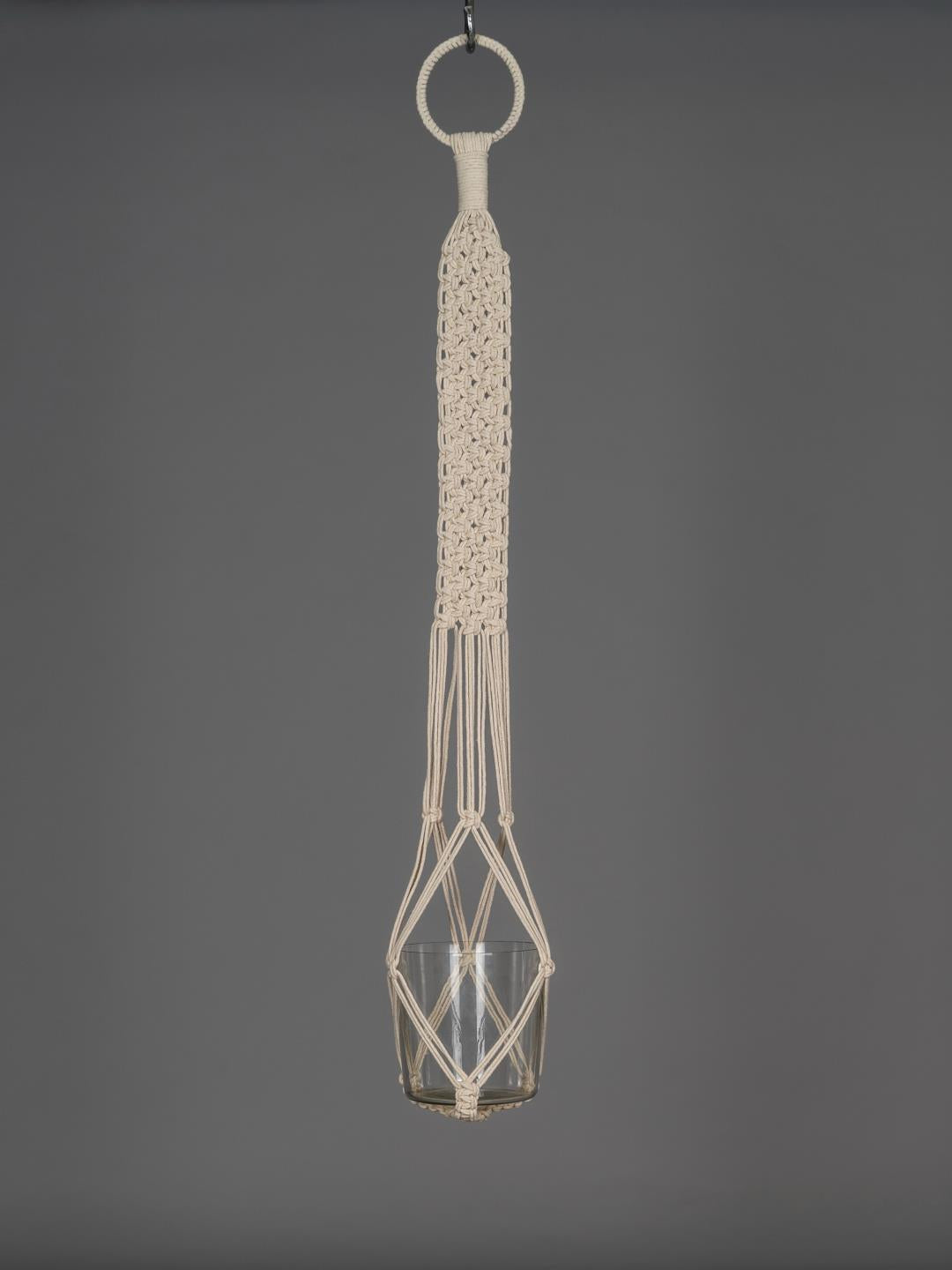 One O Eight Knots Ivory White Classic Wide Hand-Knotted Plant Hanger
