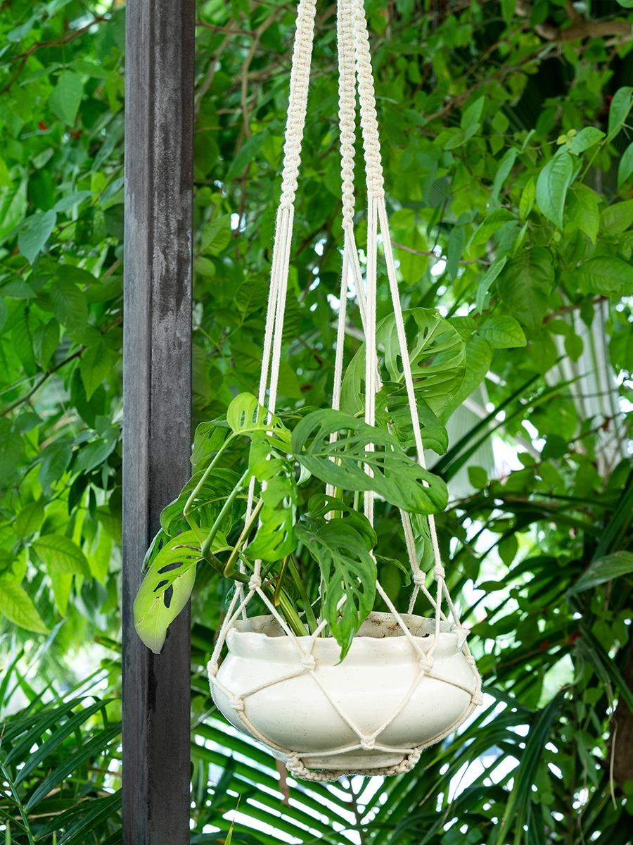 One O Eight Knots Ivory White Pretty Simple Hand-Knotted Plant Hanger