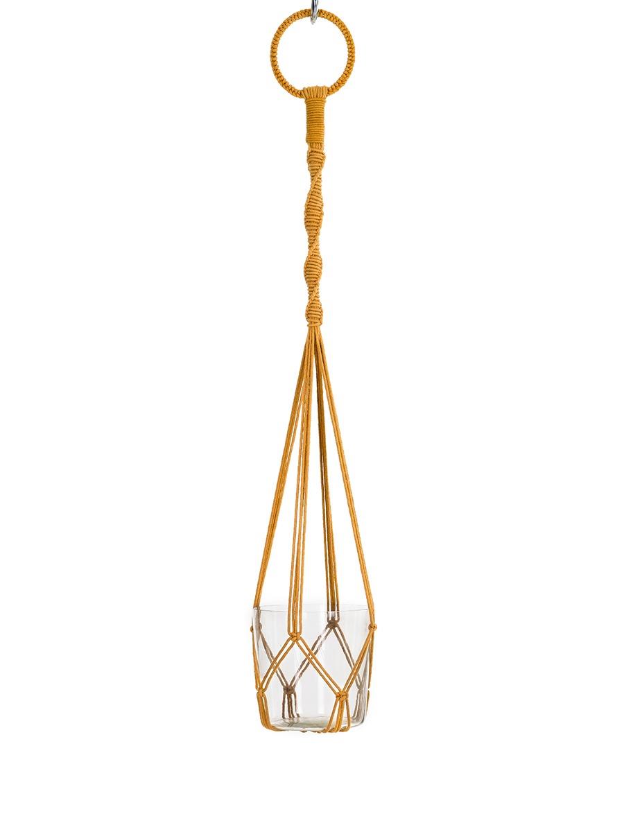 One O Eight Knots Mustard Yellow Meander Hand-Knotted Plant Hanger