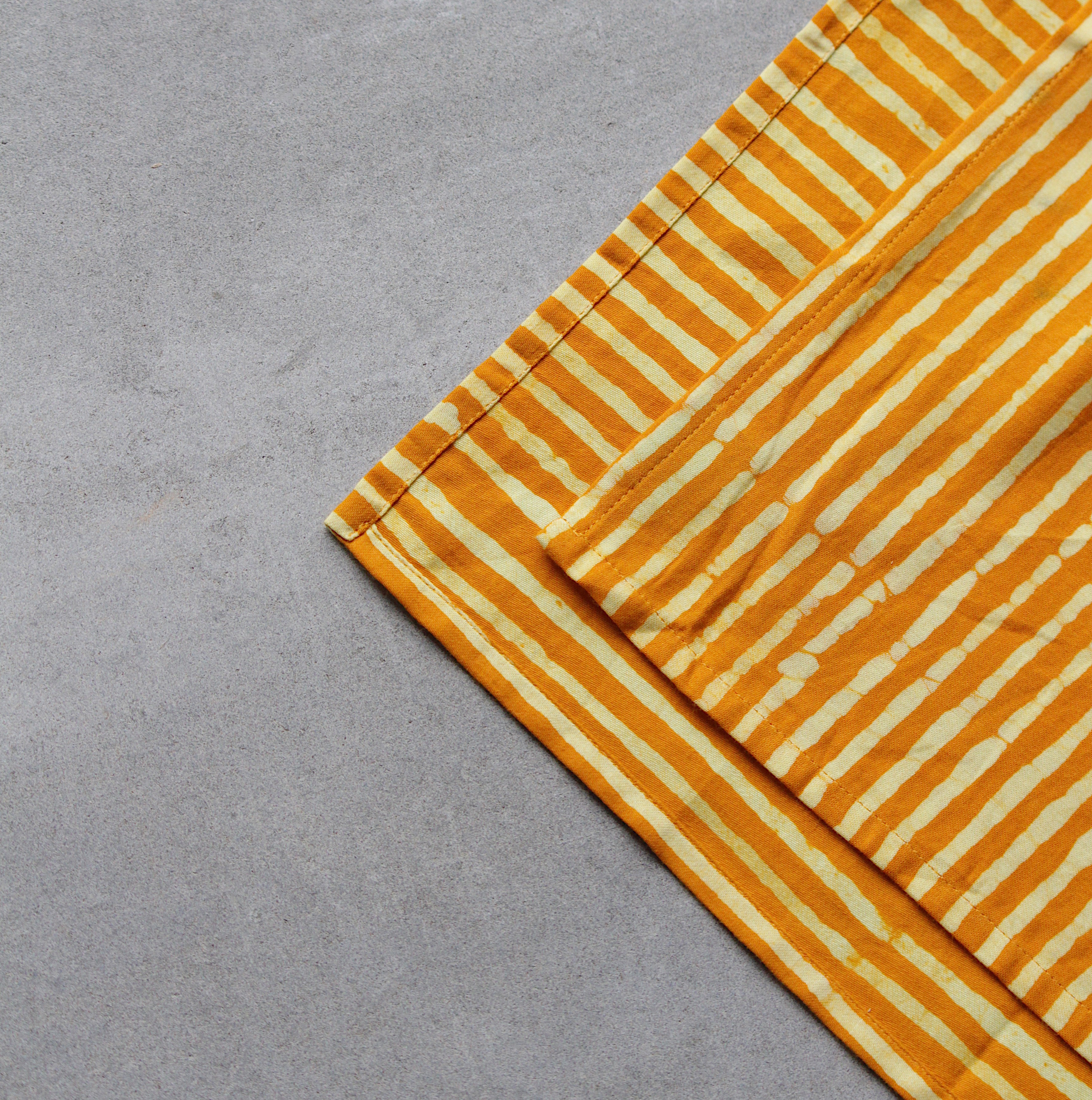 Feel the texture of free flowing threads, spun with all the coolness of an evening breeze and made chic with lines and colours created to compliment an ideal environment of slow moving exultation. Watch the strokes of the cloth breathe with the rhythm of your heart, swelling and dwindling, coming to life in your hands. Basik Linen, brings easy movement to the geometry of urban living, creating a mellow cadence in its presence. Move, Breathe, Live. Handcrafted by the Batik artisans, this series in color invokes a warm and welcoming feel.