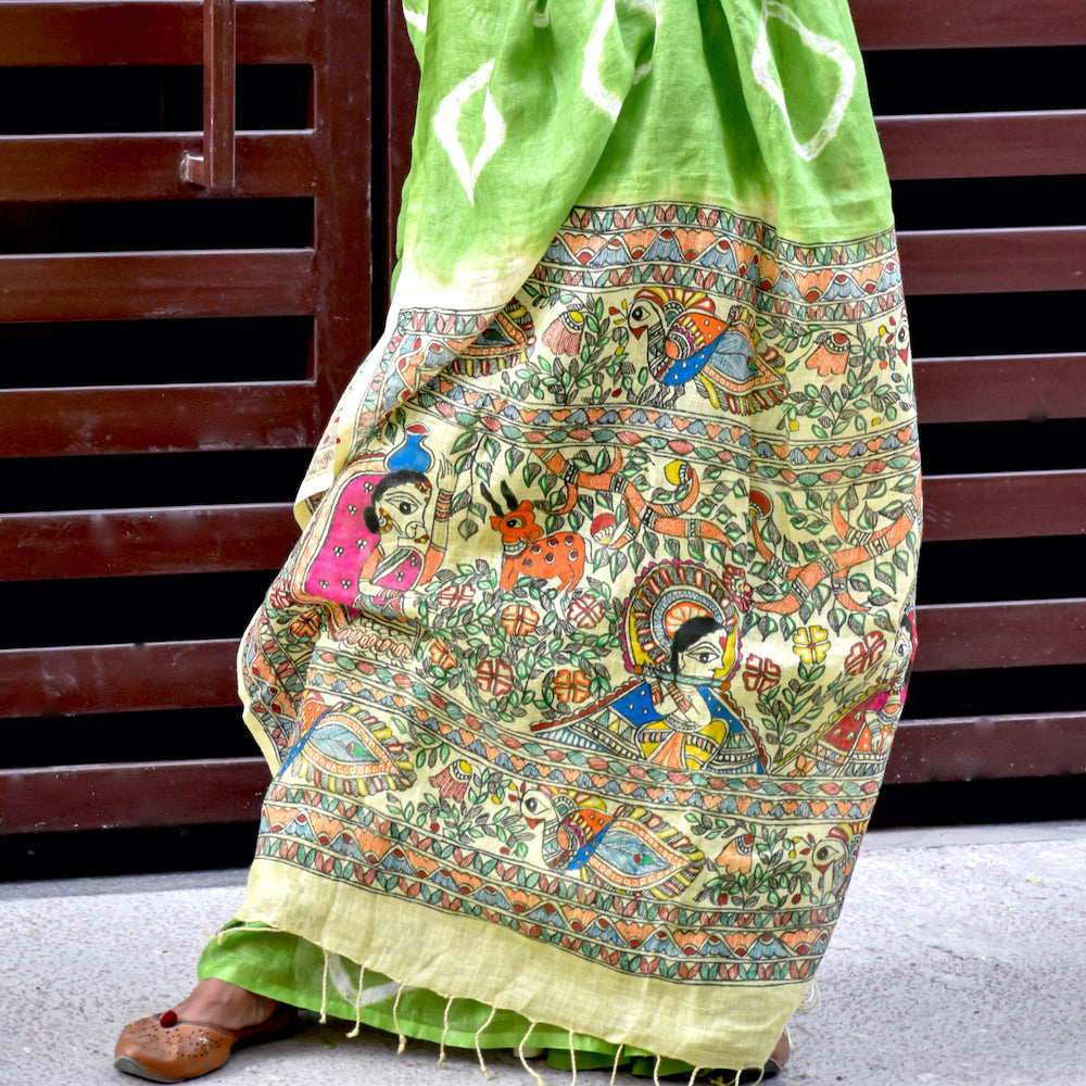 Madhubani Handpainted "Shibori Dyed" Linen Saree