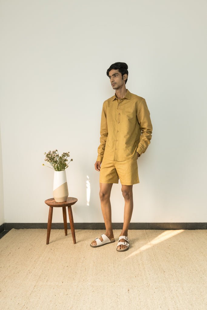 Description: Crafted from breathable hemp cotton, this shirt features a dart detail that forms an asymmetric placket. It has a utility loop that adds style and function. Finished with a classic collar and curved hem, this long-sleeved style promises to be a wardrobe staple.
