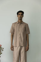 Description: This short-sleeved shirt is a perfect head turner. Designed in a versatile shade, the true classic is elevated with an inverted pleat on one side that adds continuity. It also features a subtle back yoke. The regular collar, patch pocket and buttoned placket are signature details.