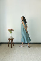 Description: This summery maxi dress is light and breathable with a gathered flowy bottom. It has a mandarin collar and zipper neckline that you can style as per your mood. Discreet side seam pockets.