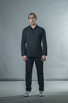 Description: Pants with an asymmetric waistband and double box pleats on one side. A mix of fabric play and asymmetry.