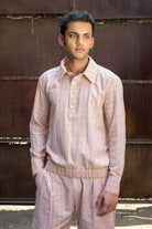 Description: Easy and fuss-free. Rendered with a rounded collar point and half placket with button fastening. Elastic at the waist with subtle gathers. Panelled slim shirt sleeves with exaggerated cuffs.