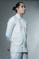 Description: This classic yet stylish white shirt is constructed with minimal details. Gathers in the shirt collar, and front slits is what makes this one special.