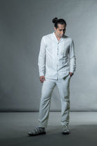 Description: A patch pocket made by joining strips of fabric creating a mat effect, is added to this shirt with shawl collar. Pair it with our Pants with Mat Pocket.