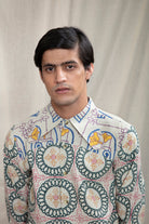 Description: A statement cotton shirt featuring our bold tile and arch hand block prints. This buttoned up shirt has a noteworthy exaggerated vintage collar.