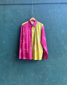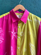 Description: A modern take on vacation style, this shirt features a striking two-tone design for a bold yet effortless look. Perfect for relaxed beach days and sunset soirées.
