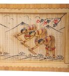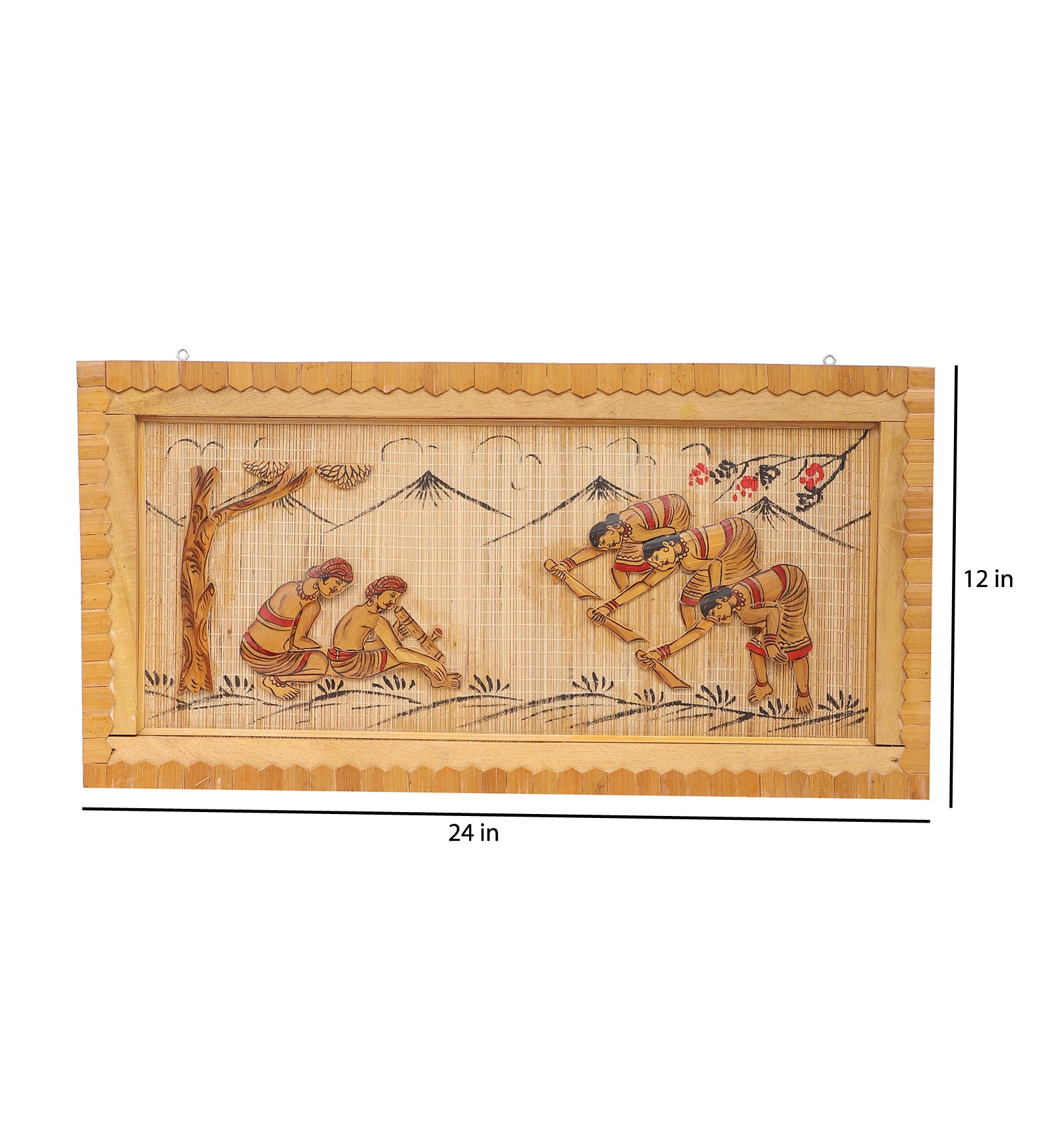 This handmade medium-sized rectangular bamboo wall hanging is made by traditional craftsmen using various layers of bamboo. Consisting of a cardboard base the wall hanging is topped with a wooden frame. The wall hanging has a background made of a handwoven bamboo mat.