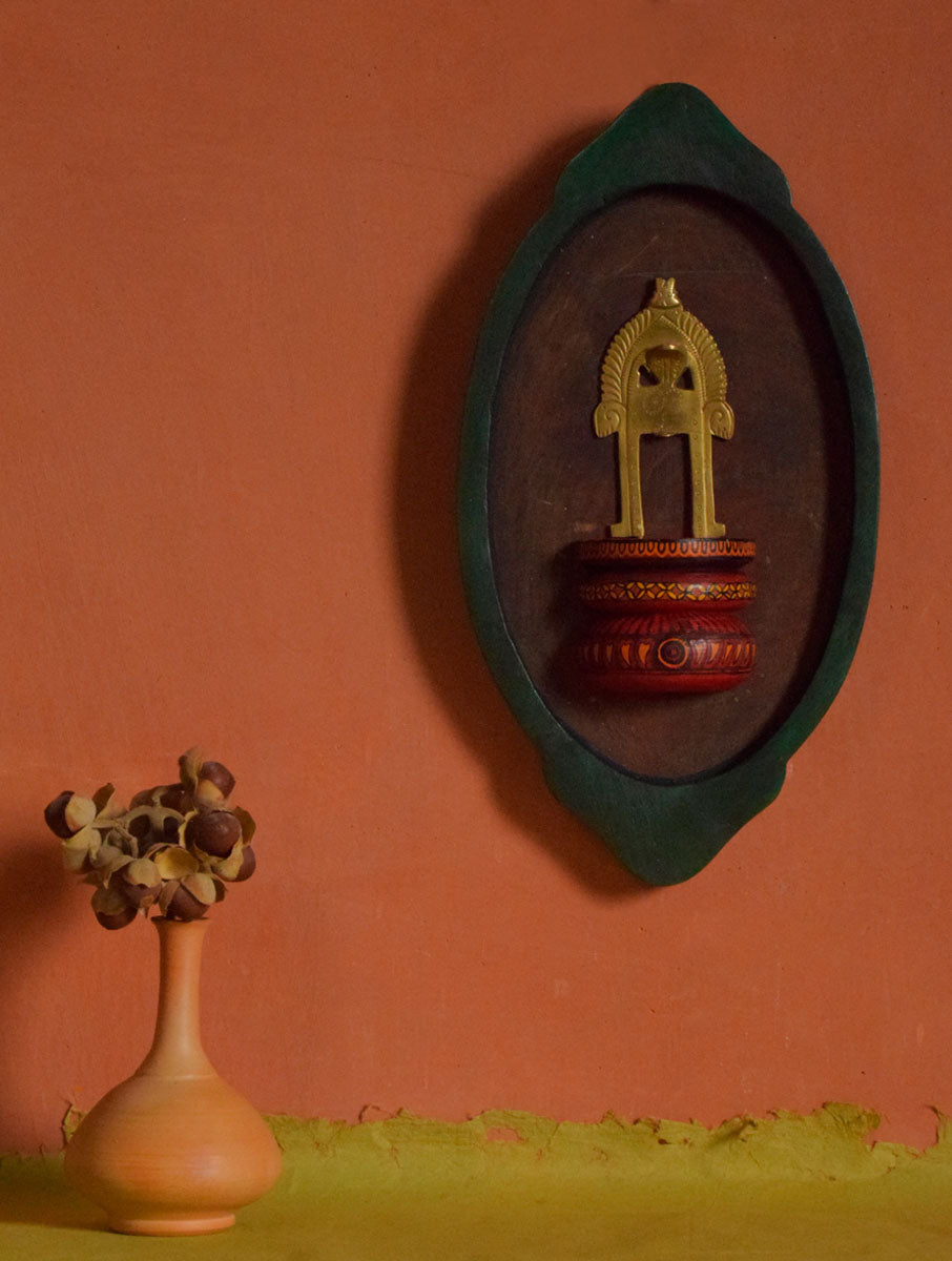 Handpaint Vintage Wooden Tray Wallart With Brass Ornament