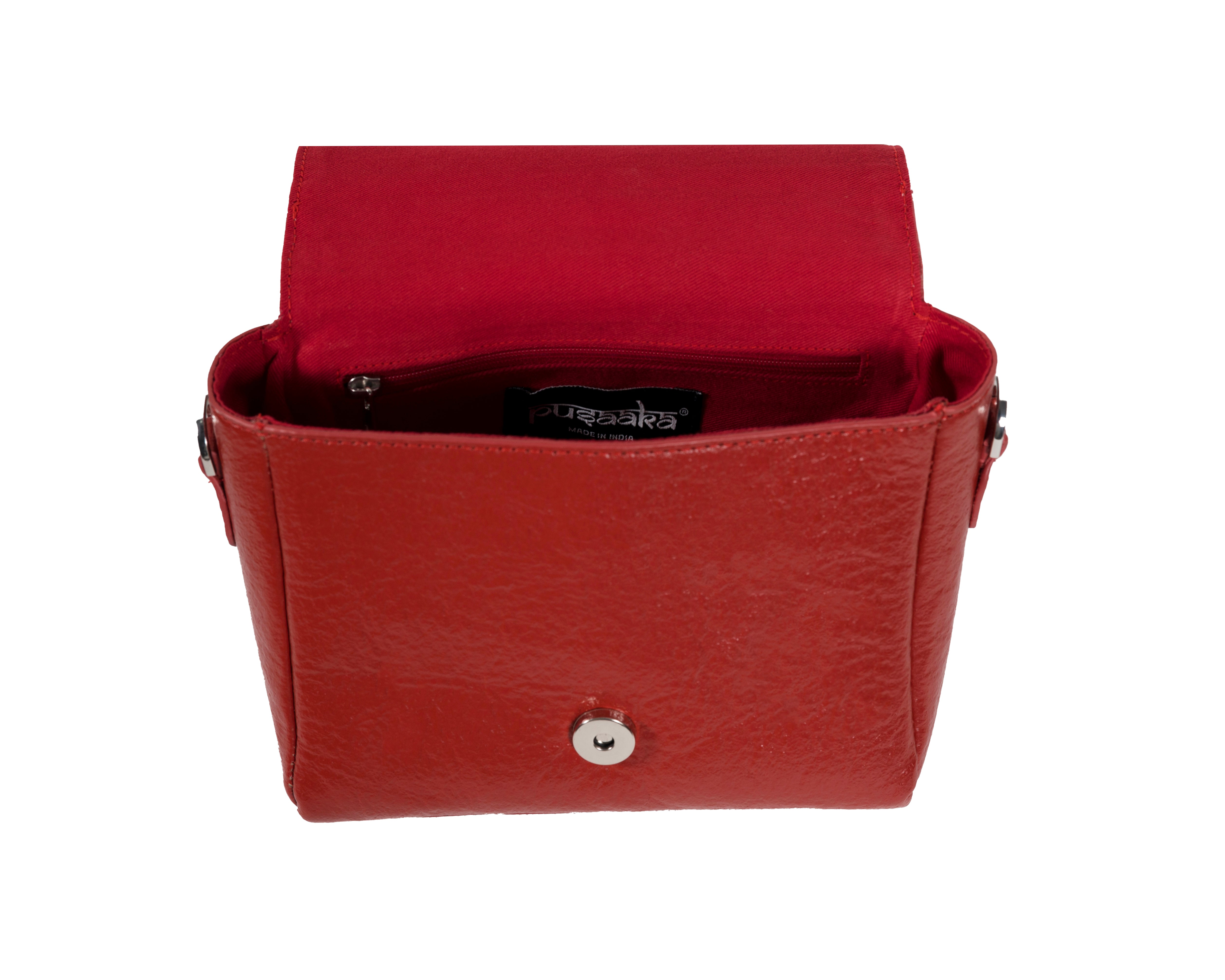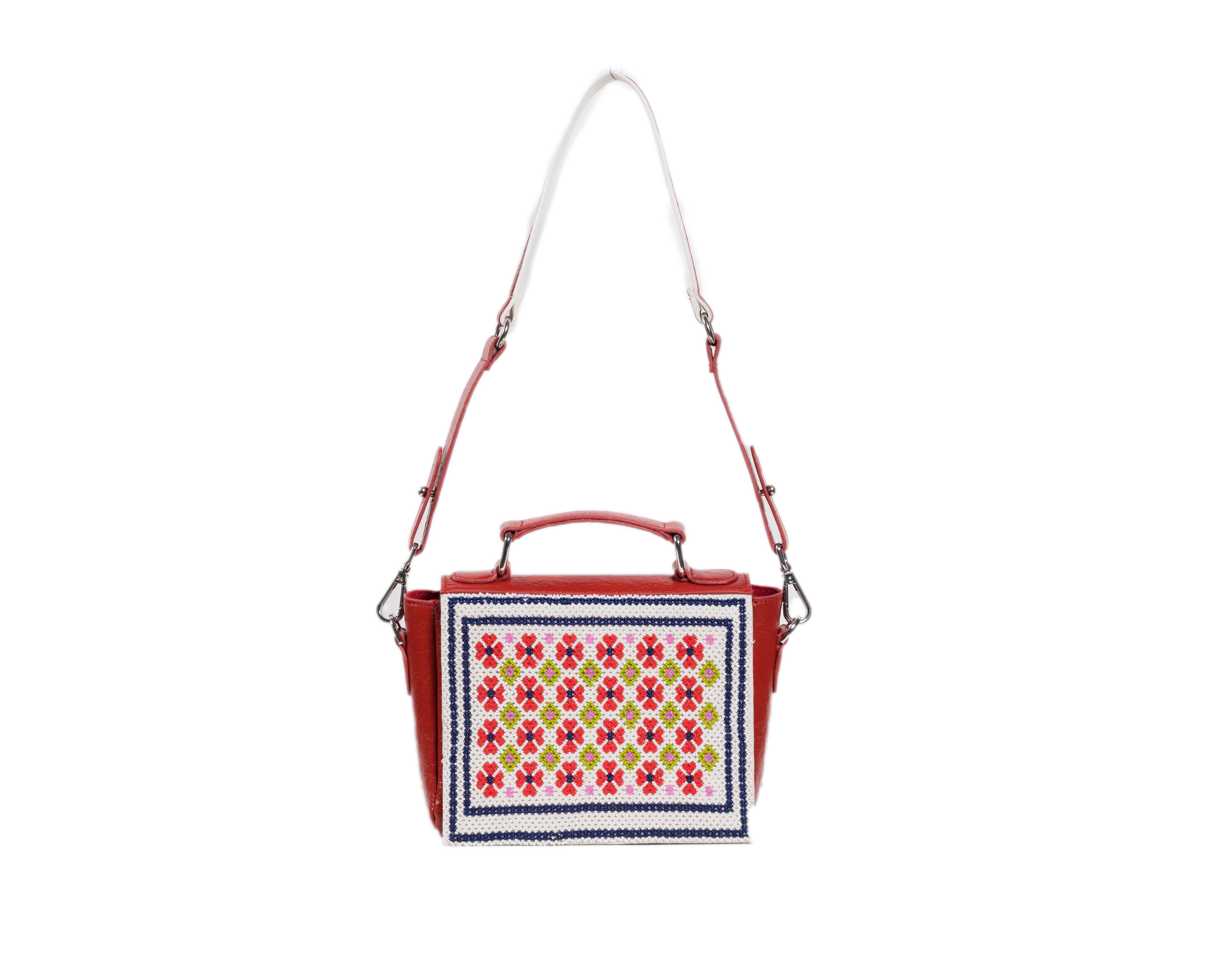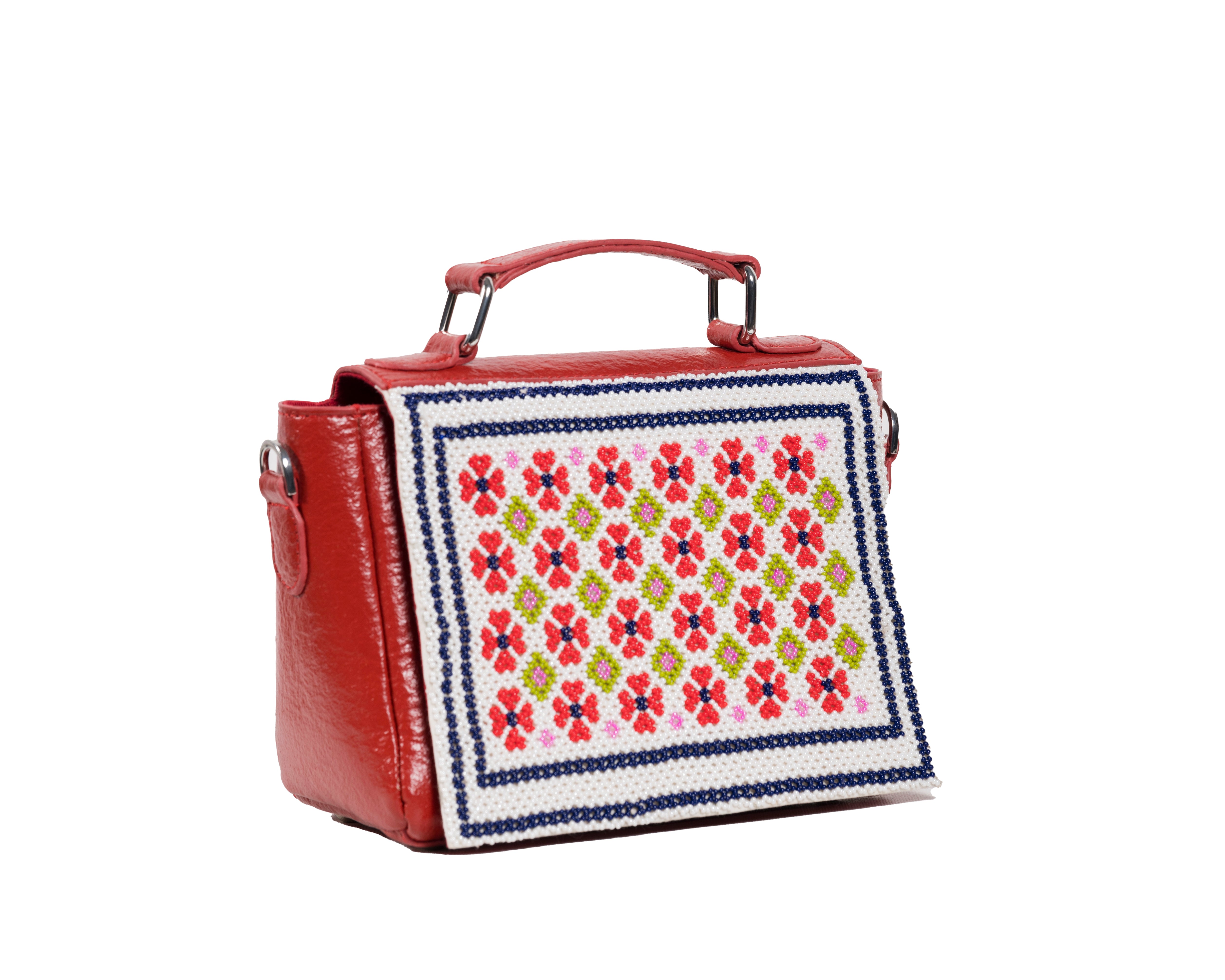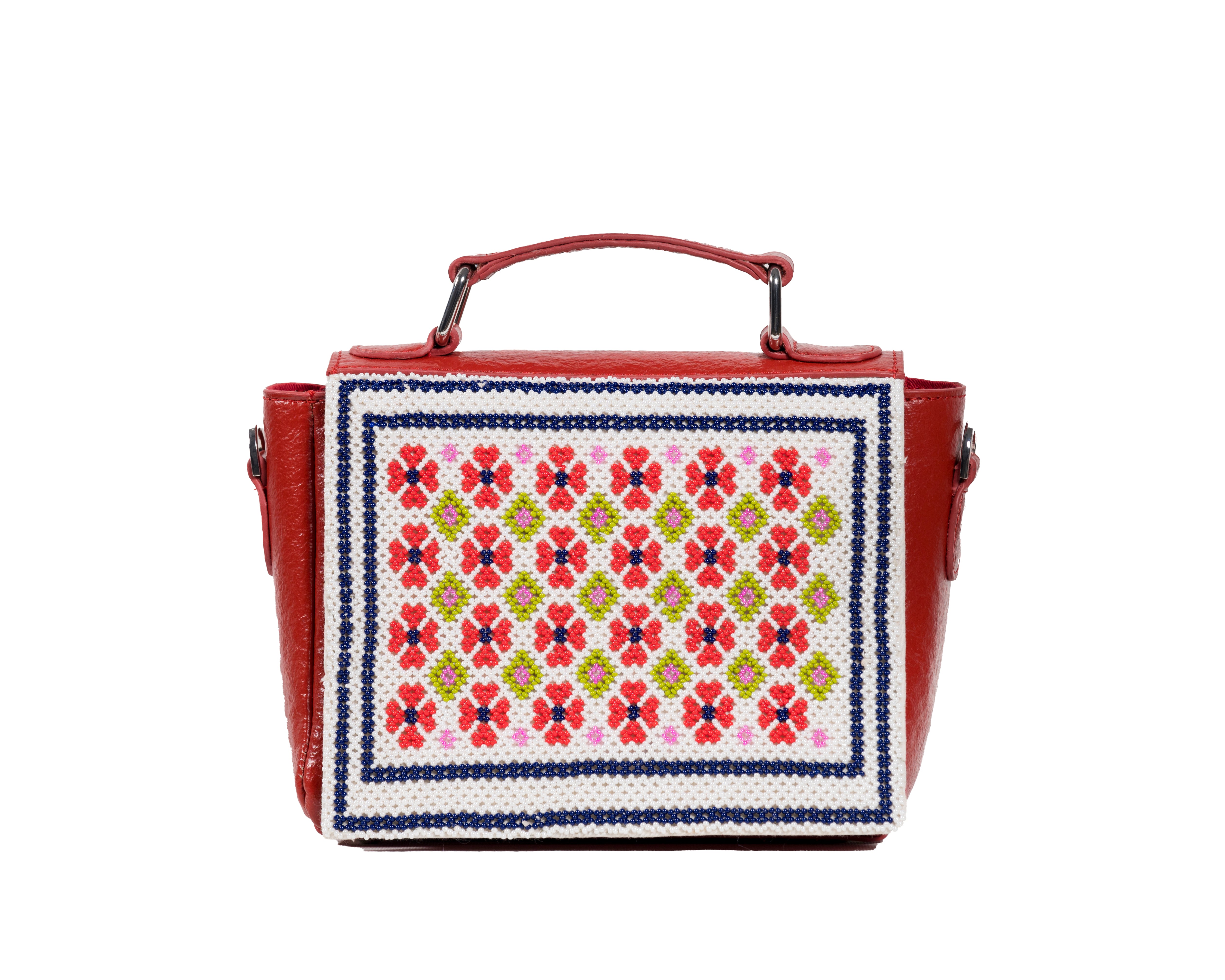 Product details: A charming piece in vibrant red featuring a delicate floral pattern rendered in traditional dal-moti beadwork. The symmetrical arrangement of petite flowers showcases the intricate detailing possible with Czech glass beads. This compact purse captures the essence of Gujarat's decorative Toran art, translated into a portable piece of cultural heritage. The bright red tone makes it a perfect statement piece for casual outings.