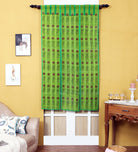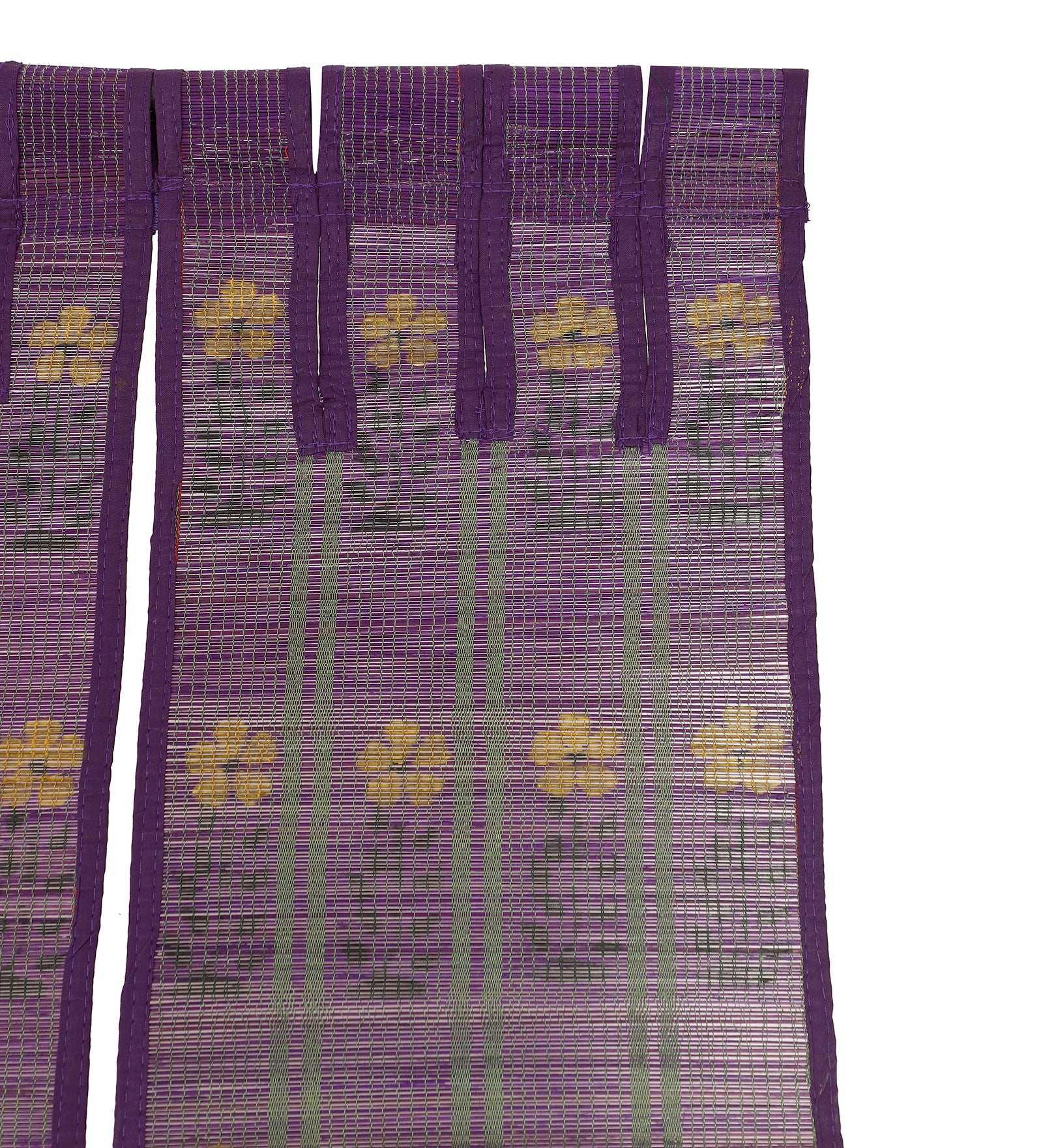 Handmade bamboo mats, stitched into curtains with bamboo rings.