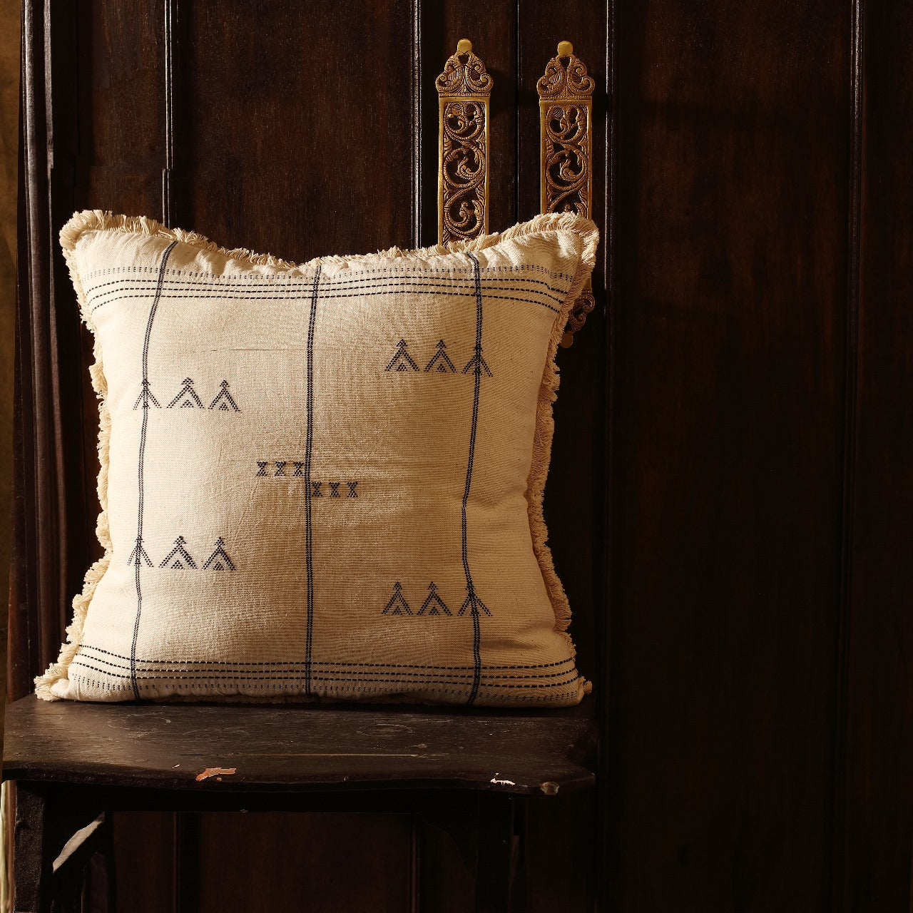 Black and Off-White Antique Organic Cotton Cushion Cover ( L-20″ x W- 20")