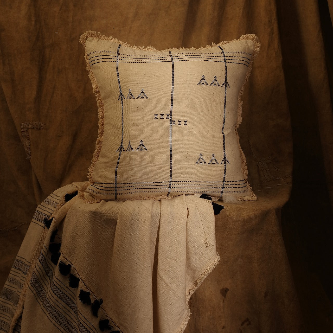 Handwoven Organic Cotton cover with cotton laces on edges and beautiful tassels for the embellishments.