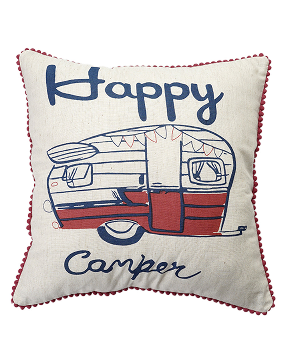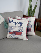 Cream Sheeting Happy Camper 12x12 Inch Set Of 2 Cushion Cover