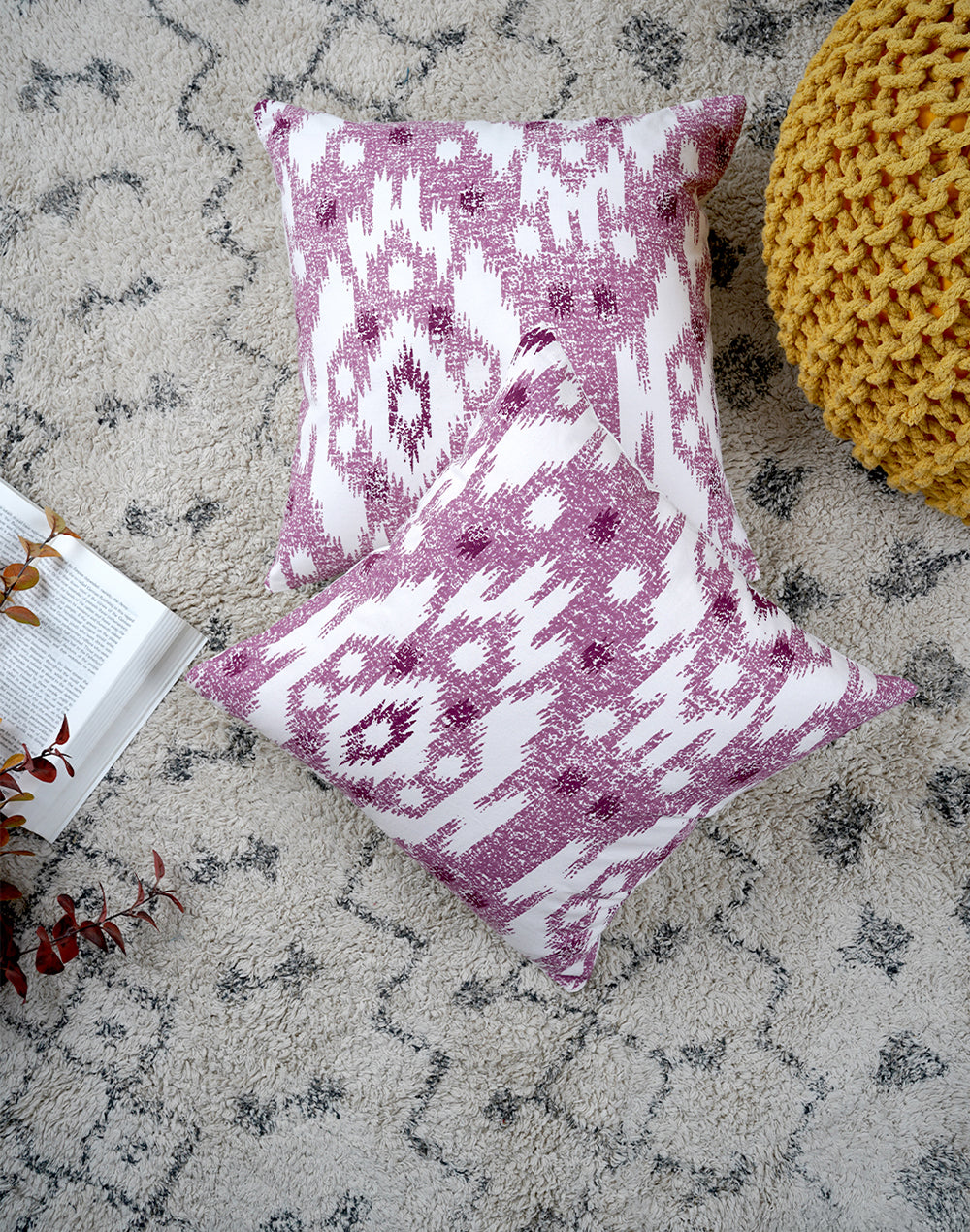 Purple Sheeting Ikat Print 16x16 Inch Set of 2 Cushion Cover