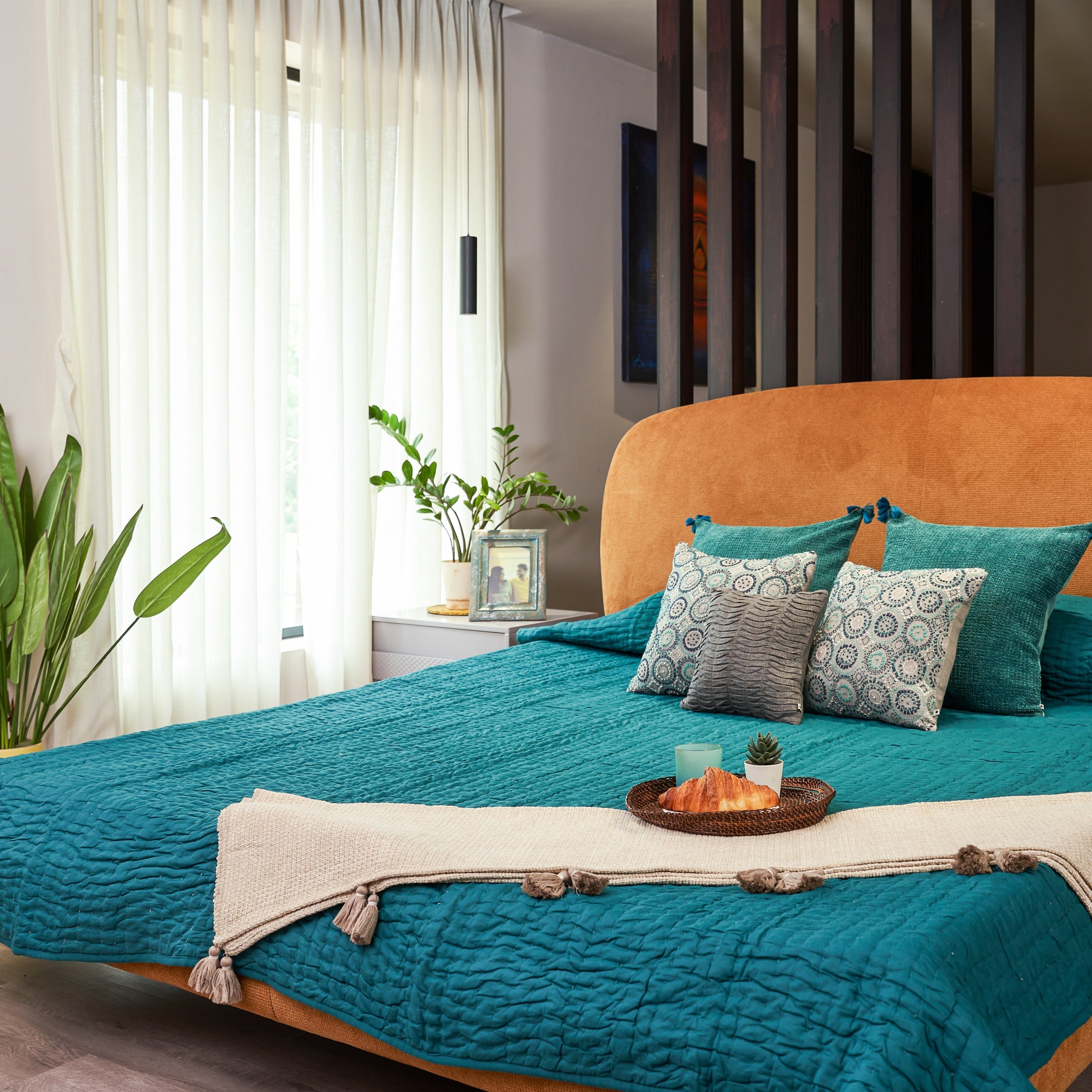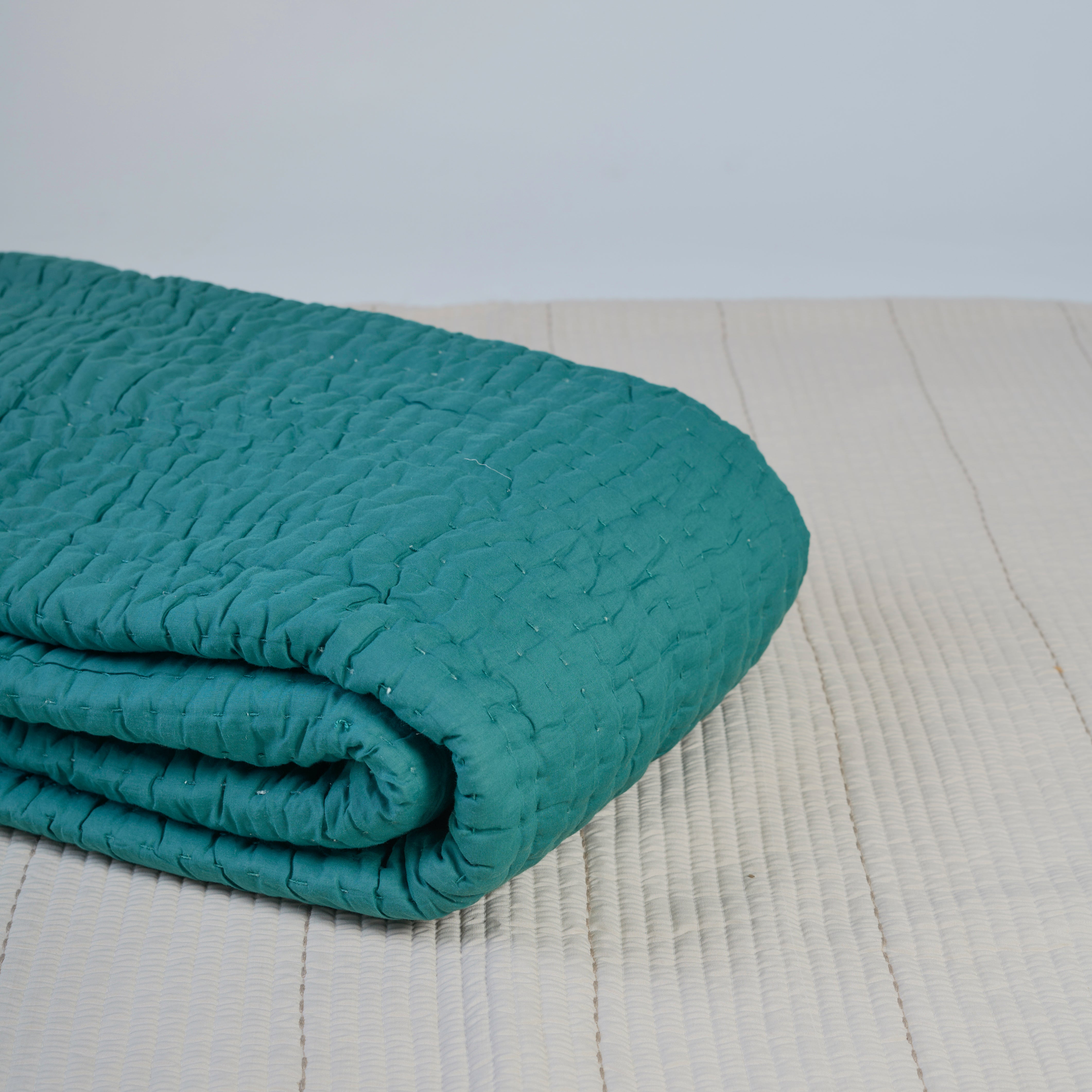 Handcrafted with soulful Kantha Stitch, our range of Pure Cotton Bedcovers with cotton filling is the perfect addition to your bedroom. These bedcovers offer unparalleled comfort and a luxurious look and feel, elevating the ambiance of any space. Additionally, they can be custom-made to fit your specific size and color requirements, ensuring a perfect match for your decor. Experience the perfect blend of craftsmanship and elegance with our bespoke cotton bedcovers. This set only includes 1 bedcover