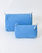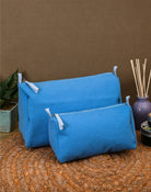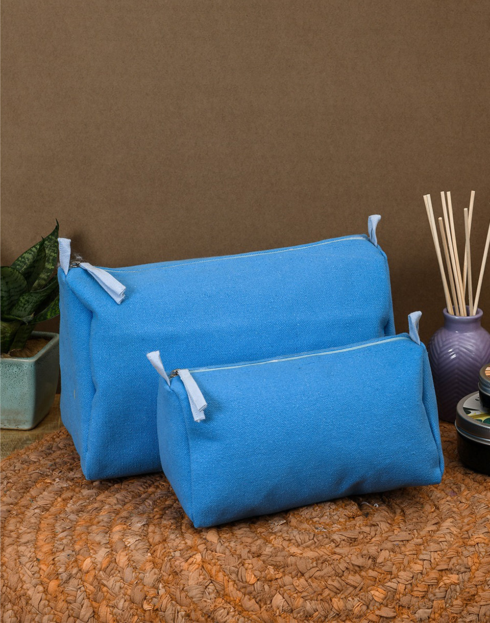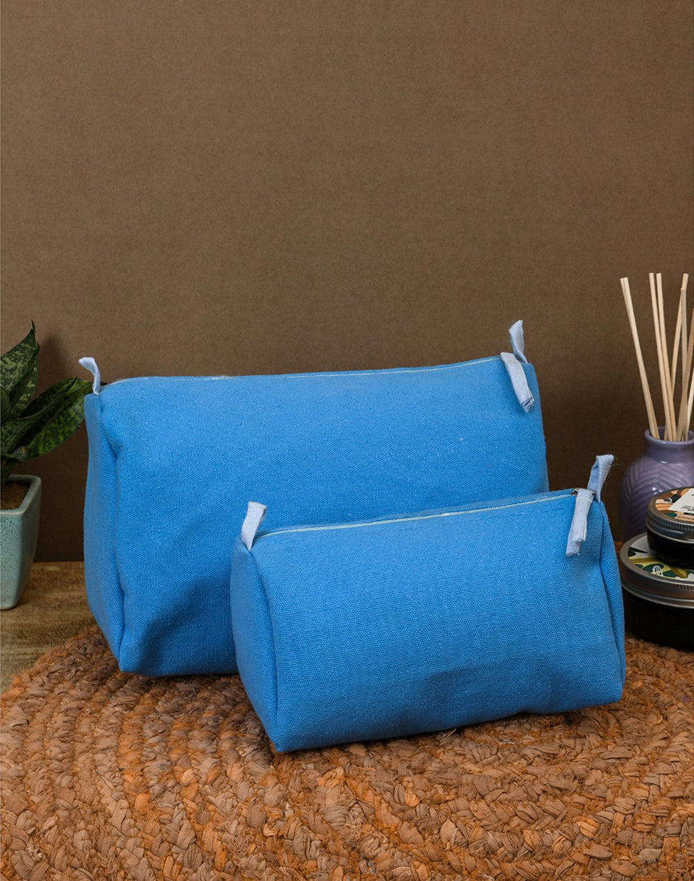 Blue Cotton Solid Plain 10x7x5 Inch & 8x4x4 Inch Multipurpose Pouch Set Of 2