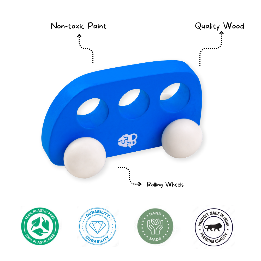 Brain Factory Wooden Bus Toy for Ages 1 Year and Above