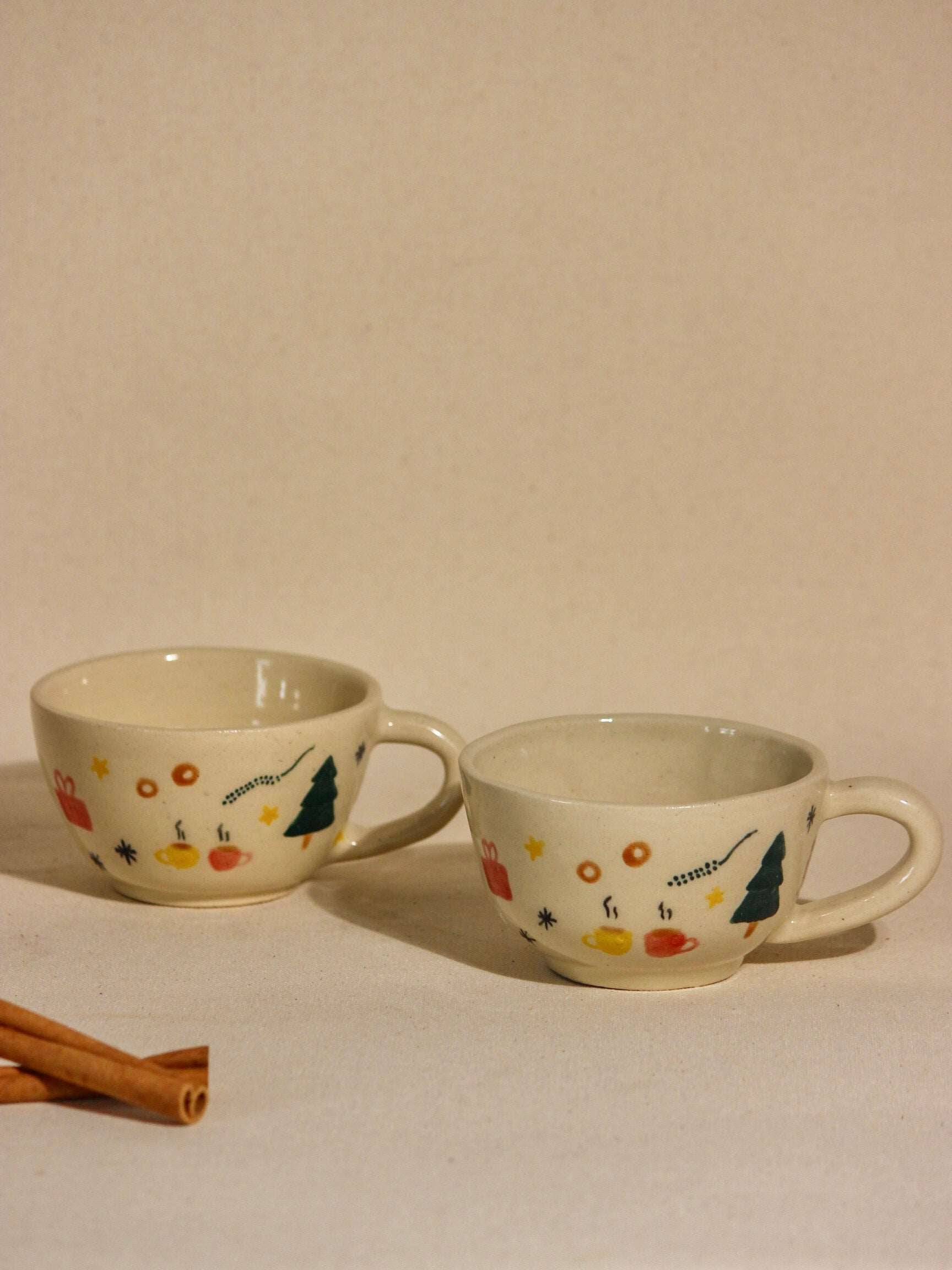 Materials : Created with non-toxic clay and glazed to a shine, the cups are microwave, oven, and dishwasher safe.