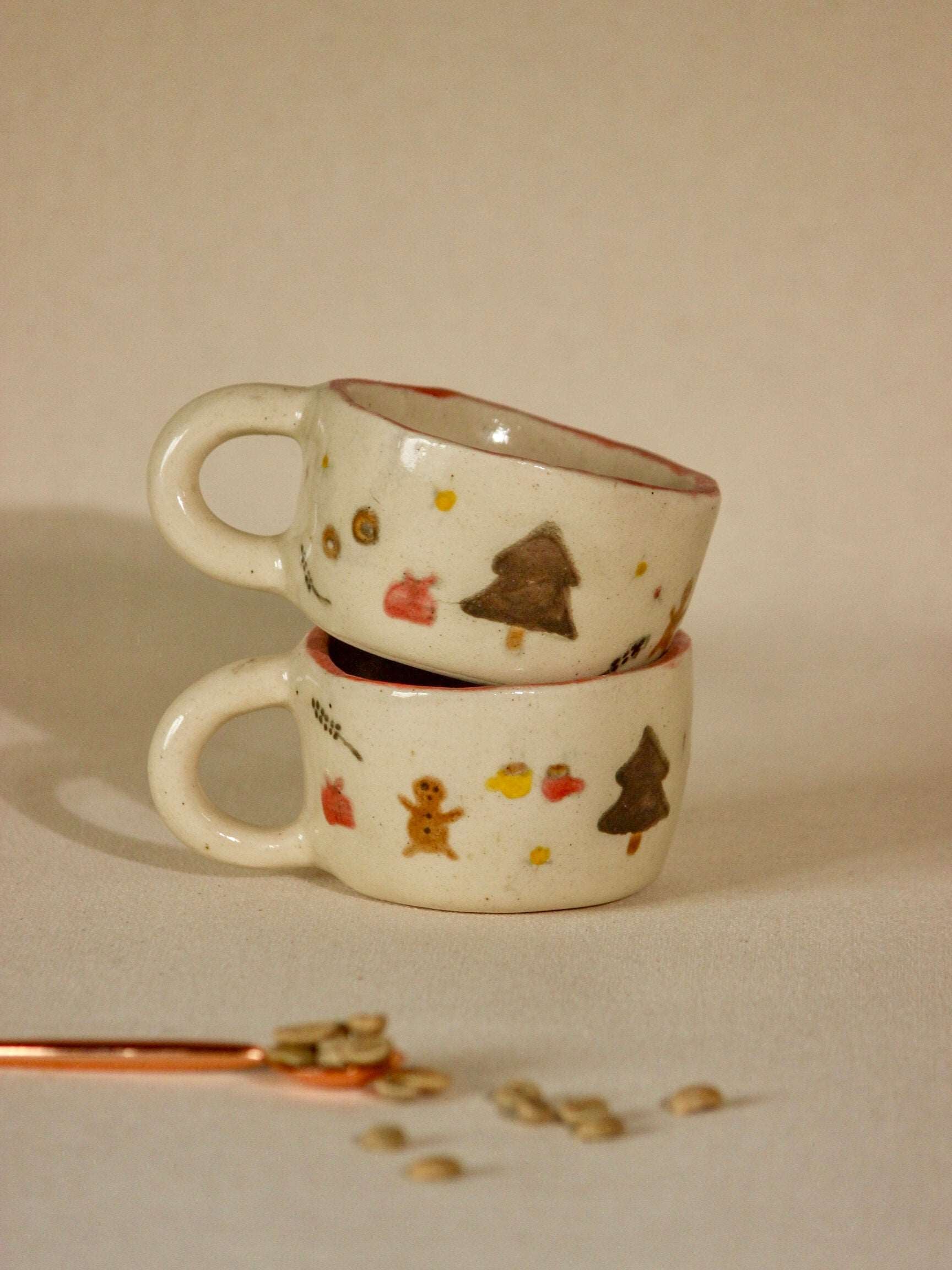 Christmas Illustration Ceramic Coffee/Tea Cup Set, Milk Pourer & Bowl - TOH