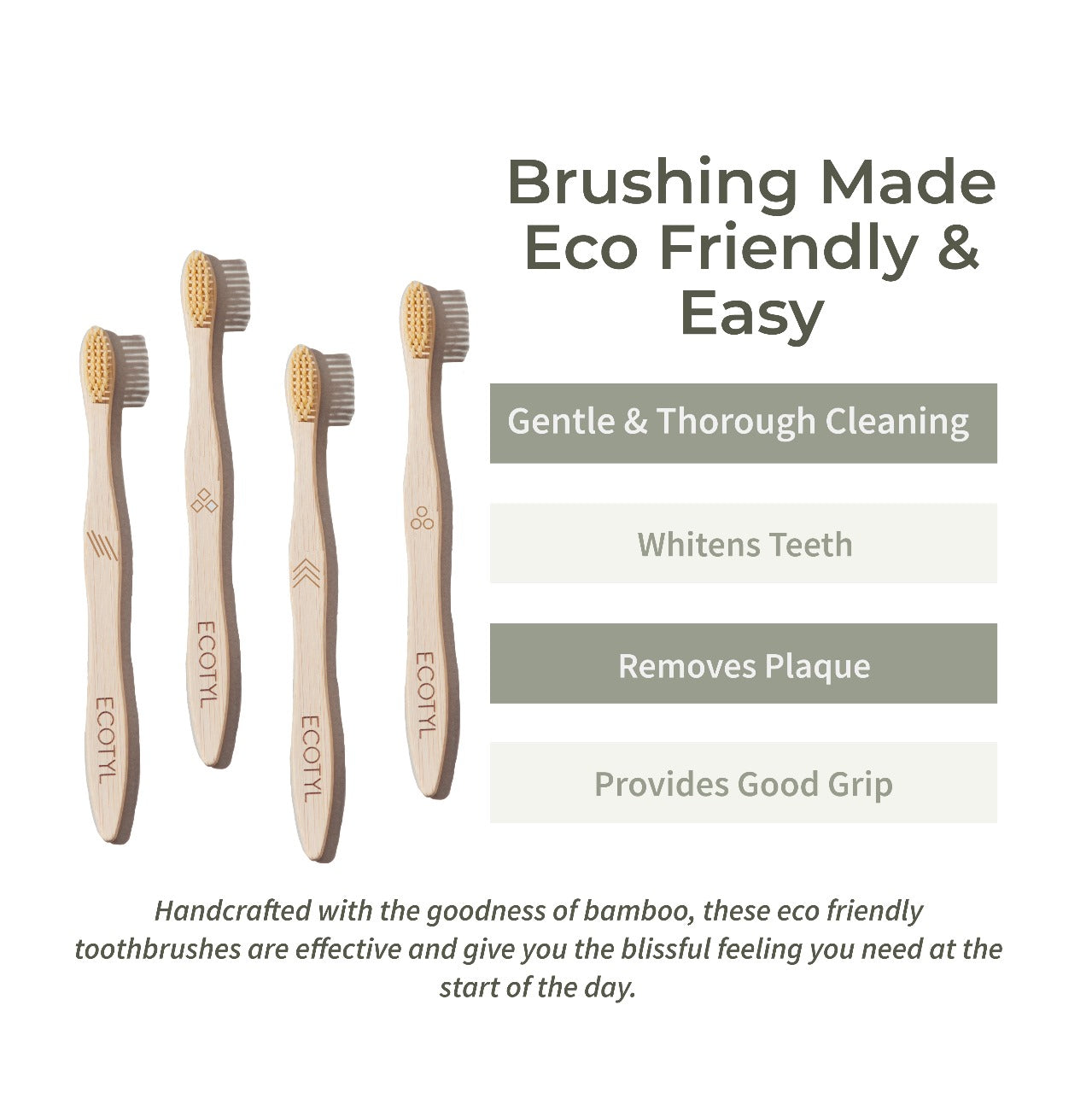 Ecotyl Bamboo Tooth Brush | Ultra Soft Bristles | Thorough Cleaning | Set of 4