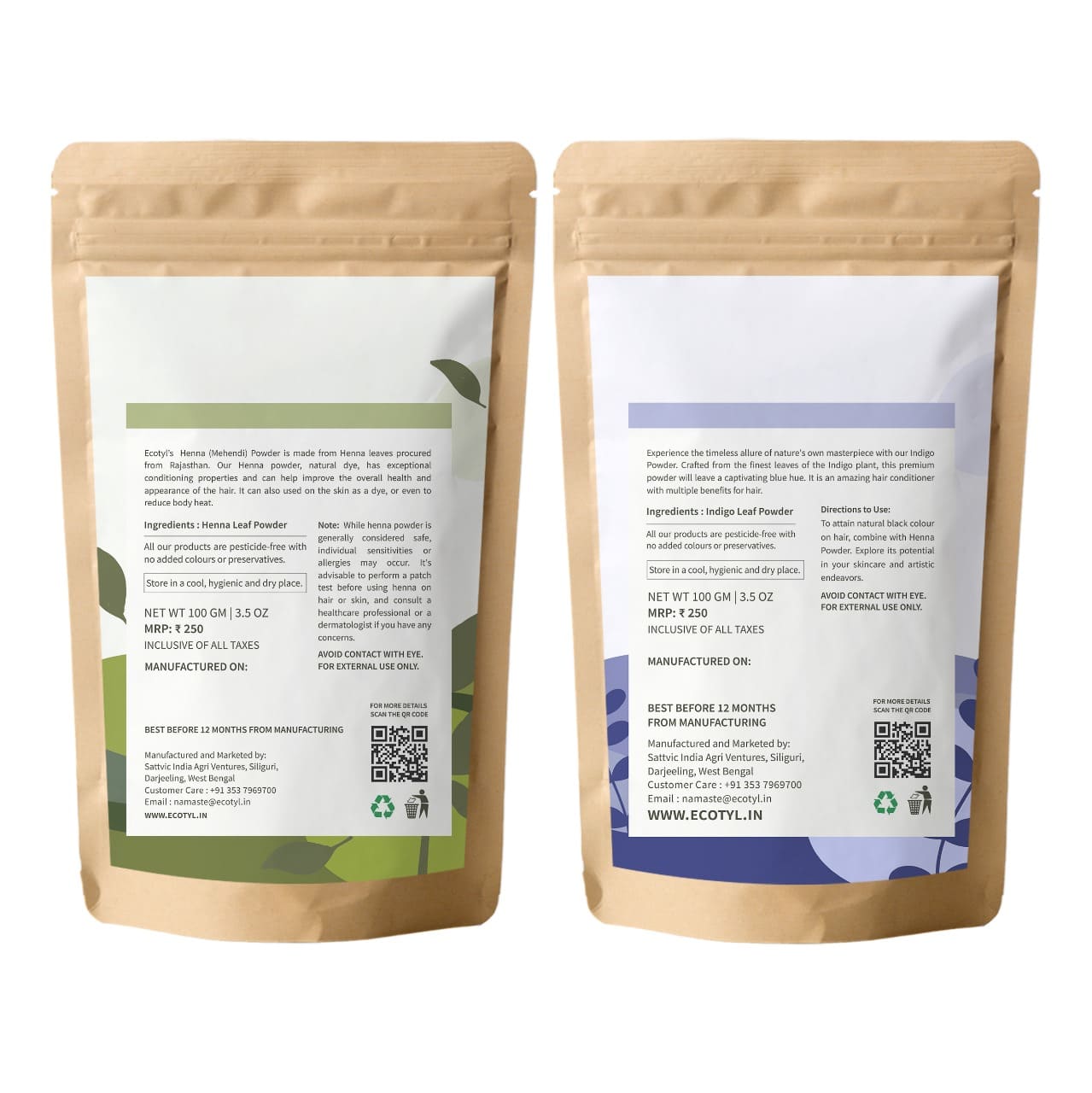 Ecotyl Hair Colour Combo - Henna Powder and Indigo Powder | Natural Hair Dye | 100g Each