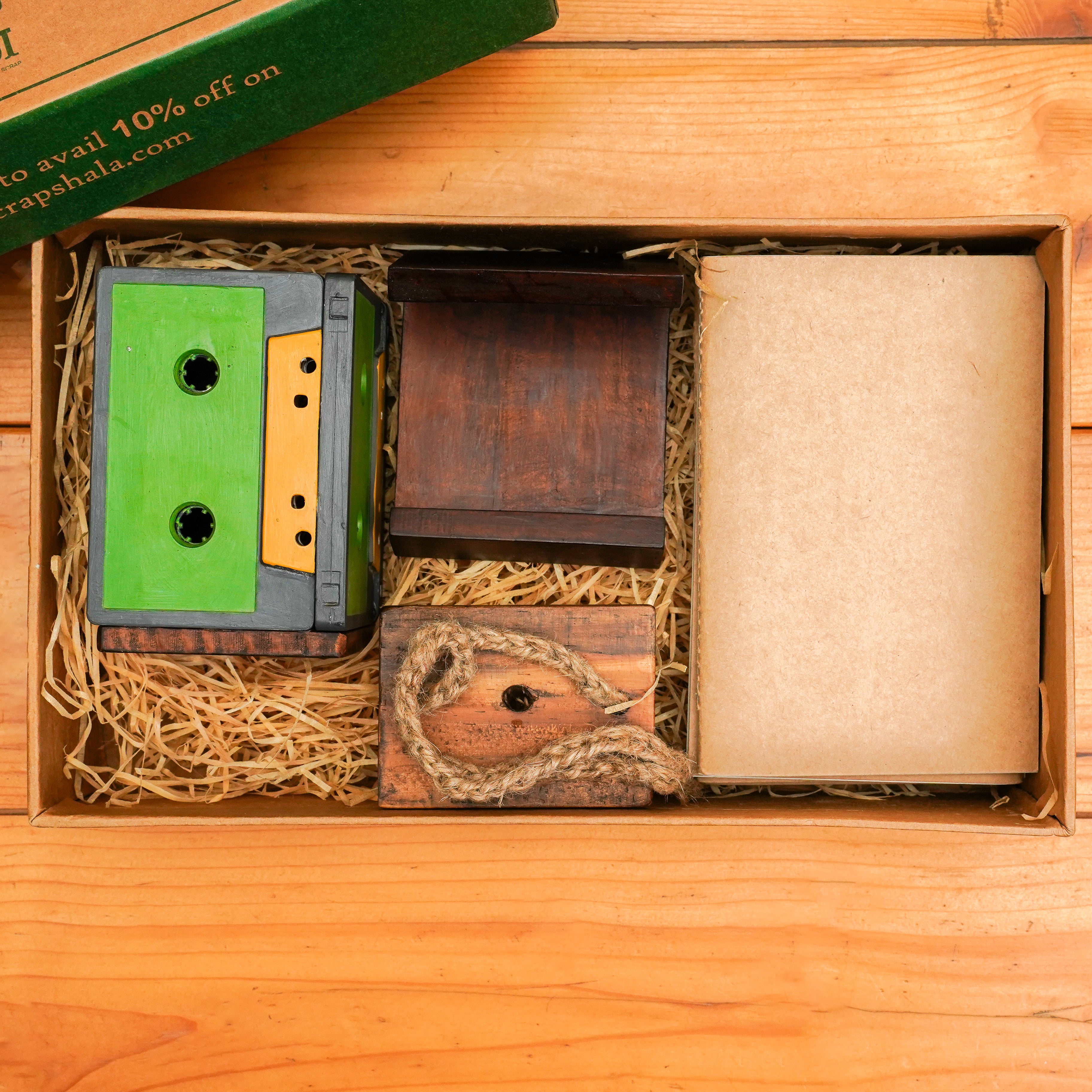 • 1 Pen stand (audio tape reclaimed mango wood) (Dimension: 5*3*3 inch)
