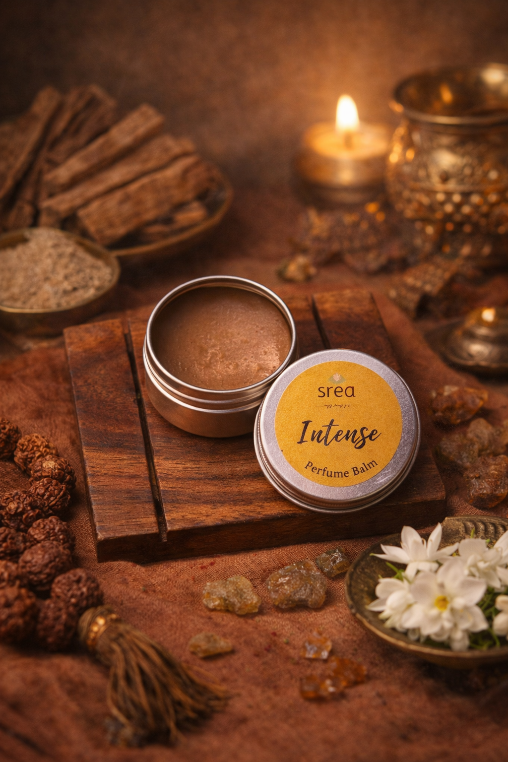 Intense is crafted for the ones who leave a mark wherever they go. Infused with the rich allure of Javadu fragrance oil, this solid perfume balm blends sultry sweetness with a musky undertone — a scent that lingers close to the skin yet speaks volumes.