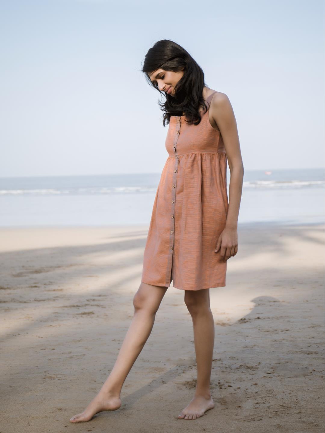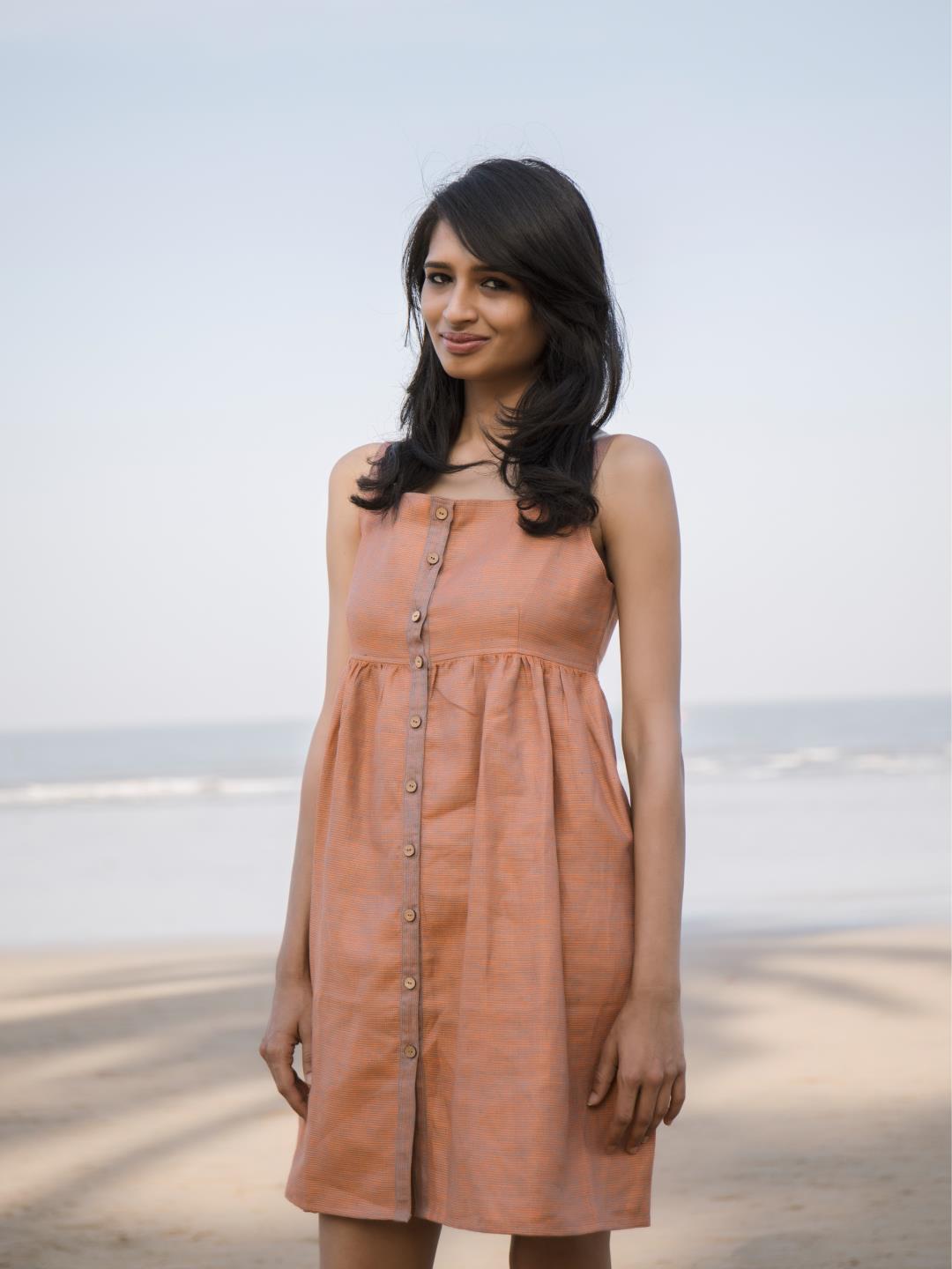 Kaizen Tangerine Handwoven Linen Upcycled Dress