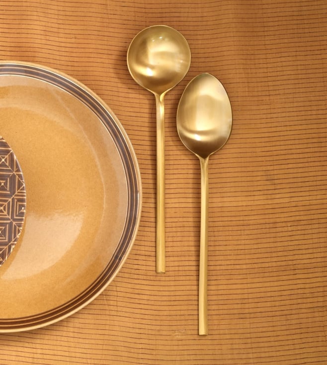 Enhance your serving experience with these sophisticated Courtyard Gold Mydra Veg Serving Laddles. Crafted from elegant brass, these ladles will make a stunning addition to any home. With their stylish gold finish, these laddles are sure to be a great conversation piece when entertaining. Perfect for serving vegetables, salads, and more. Disclaimer: All other items in the image are only for display purposes and will not be a part of the delivery content. Product colour may slightly vary due to photographic lighting sources. Country of Origin - India.
