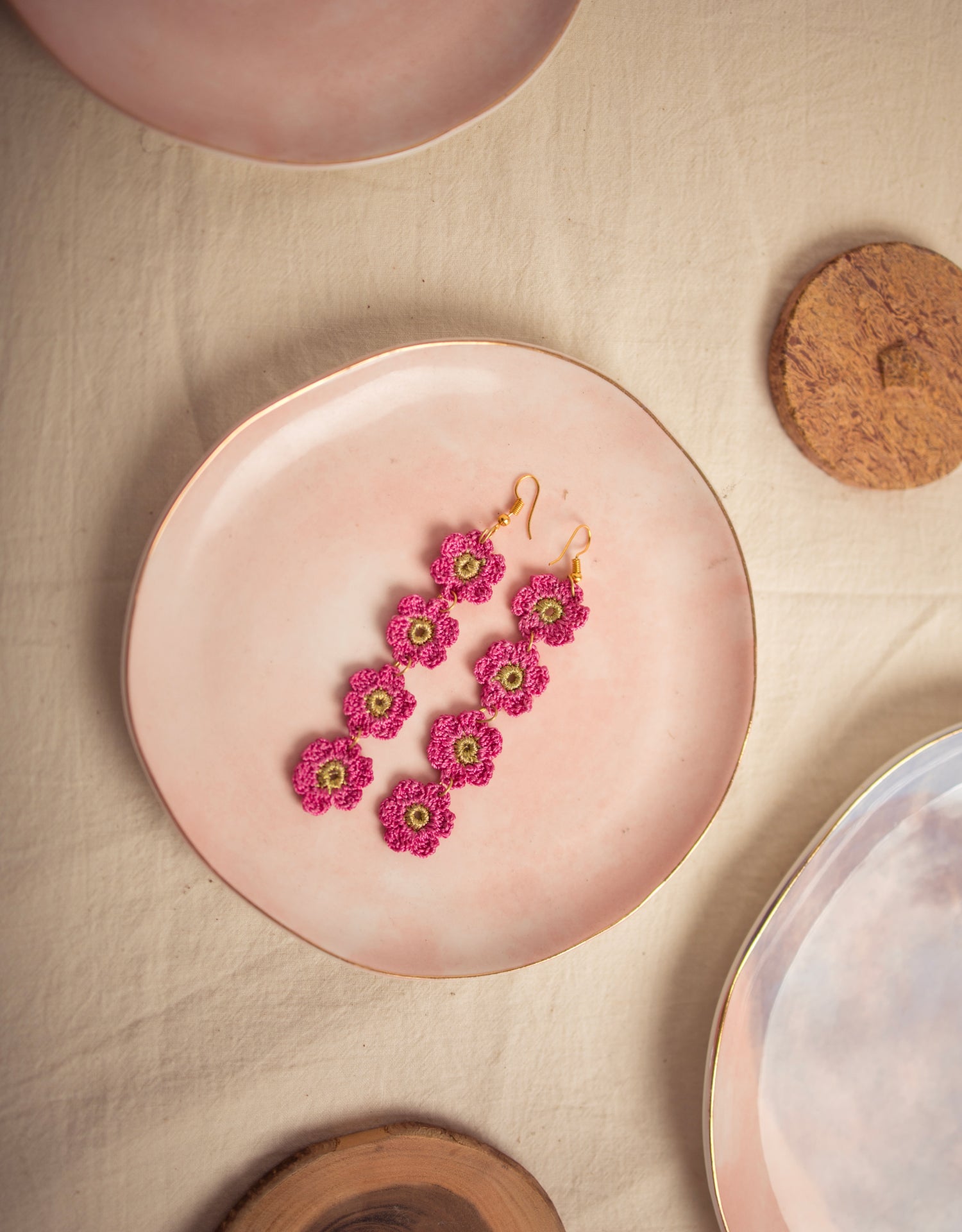 Discover our captivating collection of exquisite handcrocheted cluster drop earrings, a stunning blend of artistry and elegance.