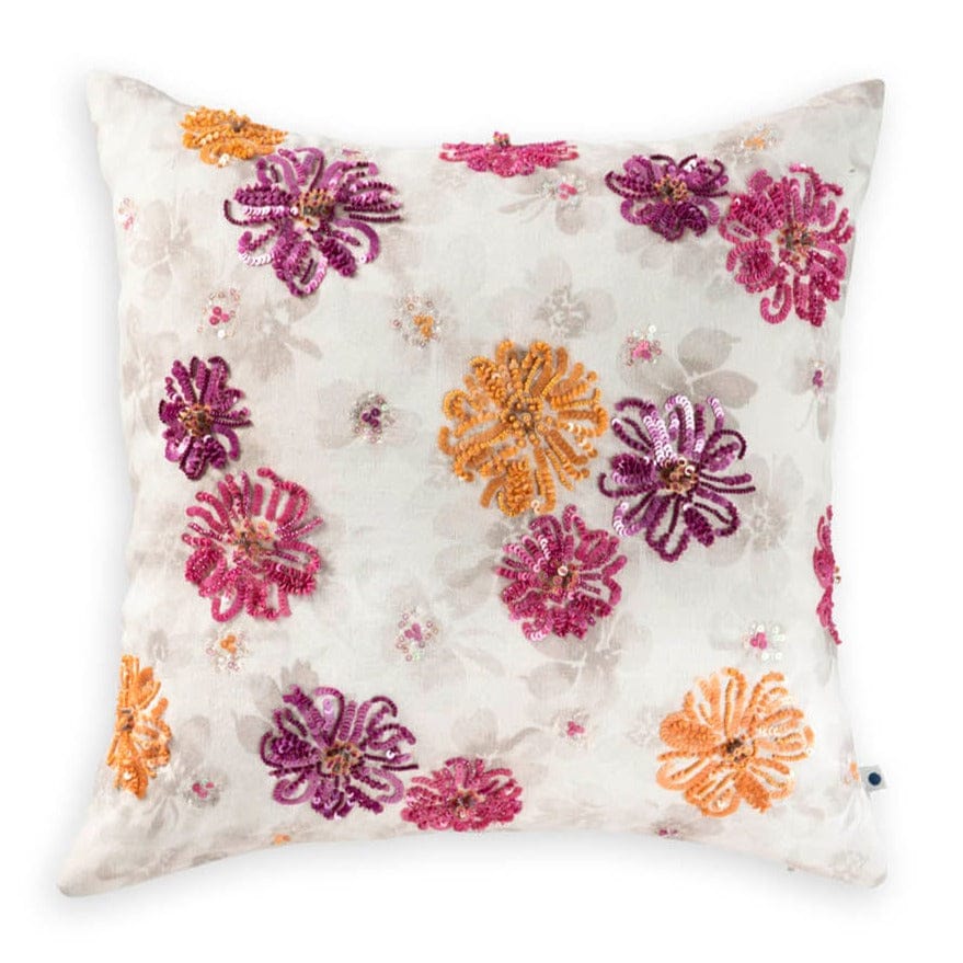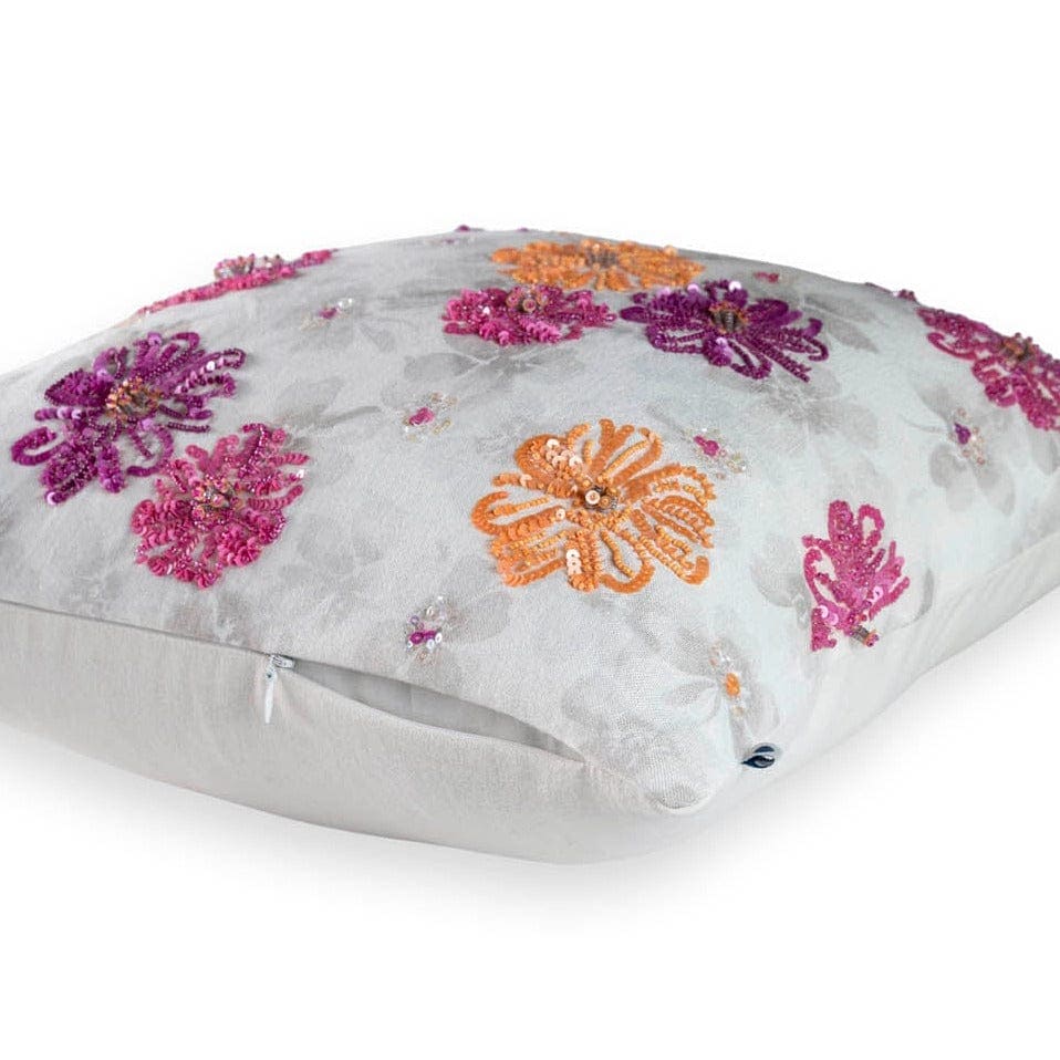 Sequinned Floral Cushion Cover