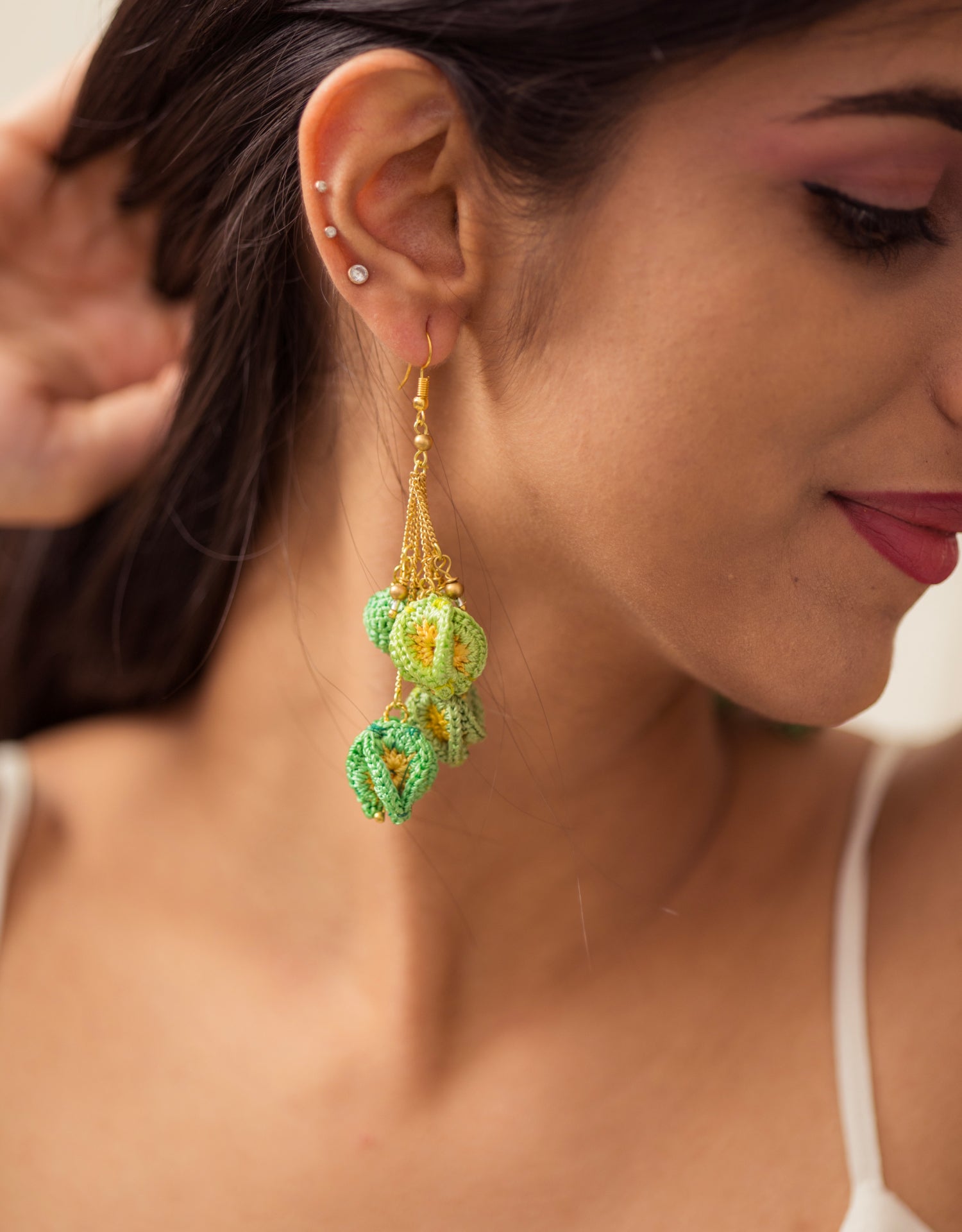 Swing Earrings ~ Green Bougainvillea