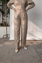 Description: The tailored pants are designed with a classic minimal approach. They are shaped with pleated, straight-legs that taper slightly towards the ankle. Pair them with The Waisted Shirt for a sophisticated look.