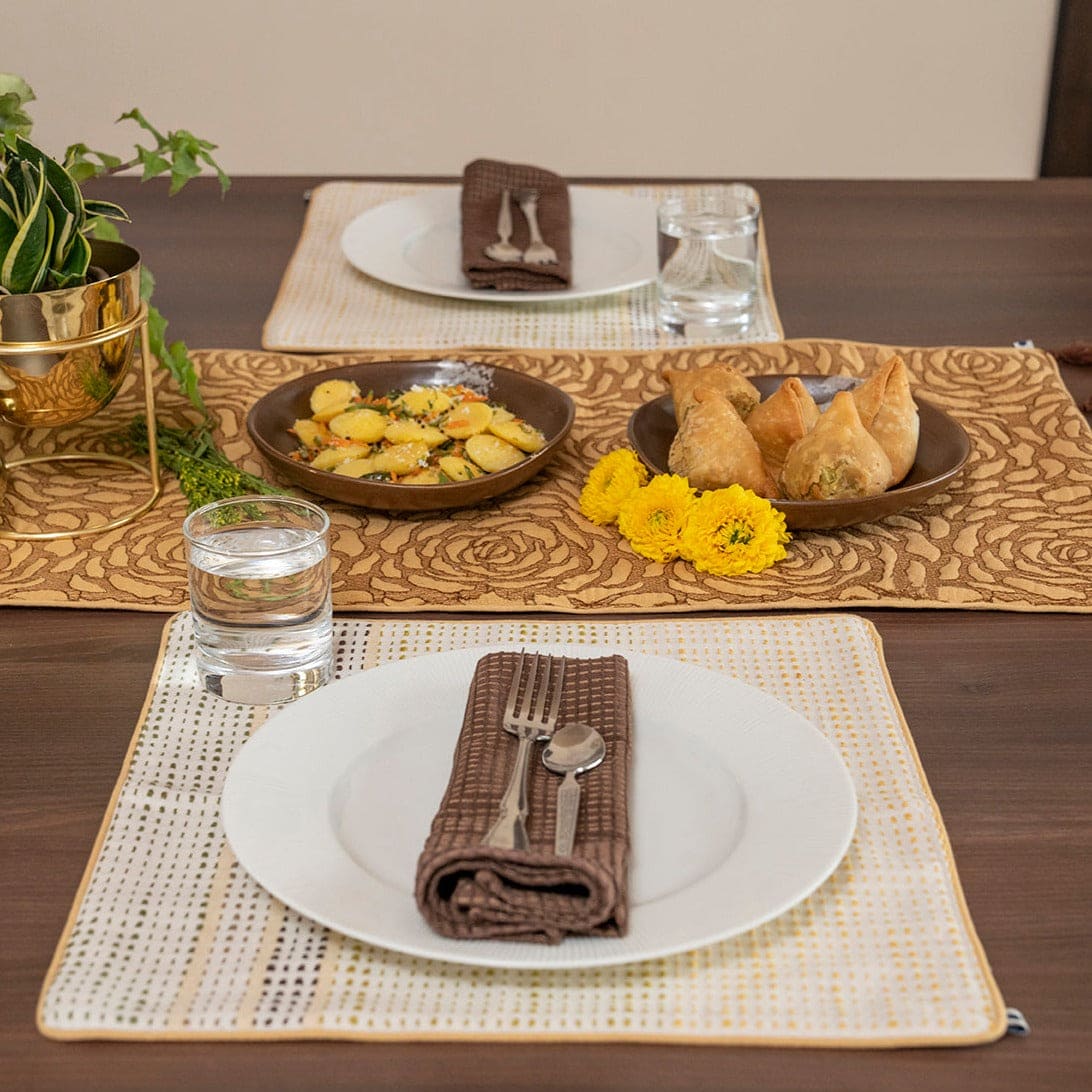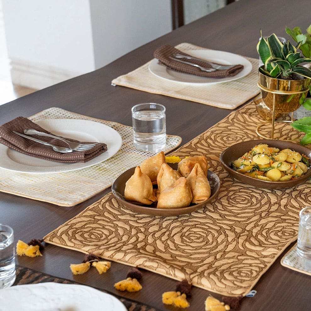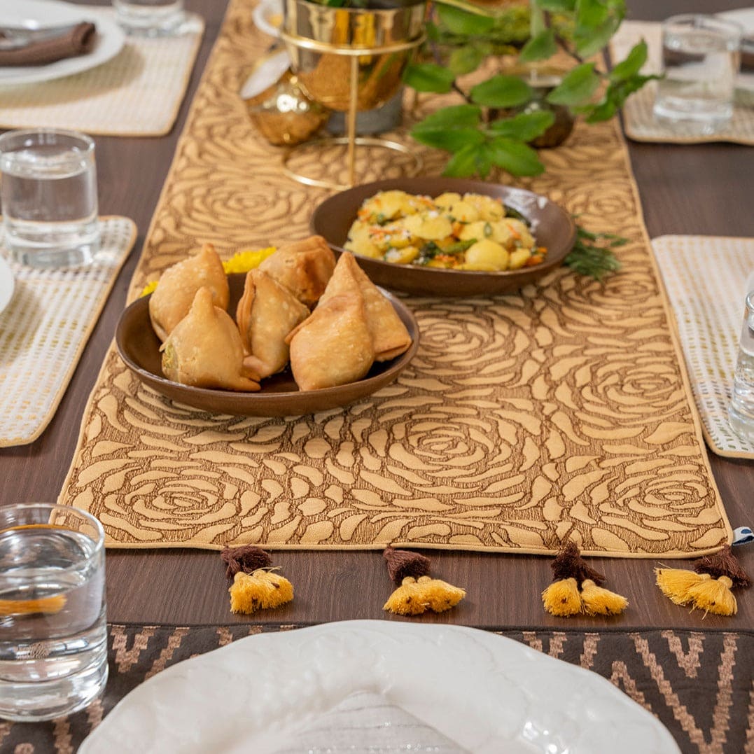 A dense rose landscape blooms over the surface of our Rose Garden Table Runner, bringing a refined and elegant edge to both everyday meals and special occasions. Quilt embroidery on cotton gives this runner a beautiful 3D texture, while a row of pompoms adds an interesting trim on either end.