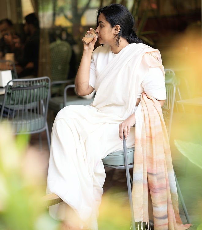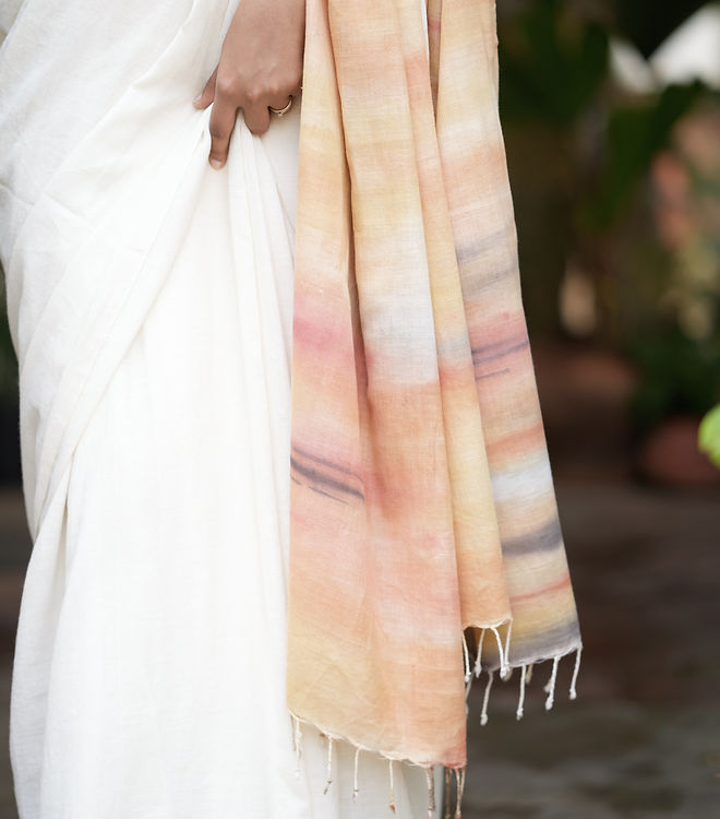 We drew inspiration from the palette of sun rays and created our own version of it on a saree. With every trial, the art came alive. And now, what you see is ‘The Sunrise’.