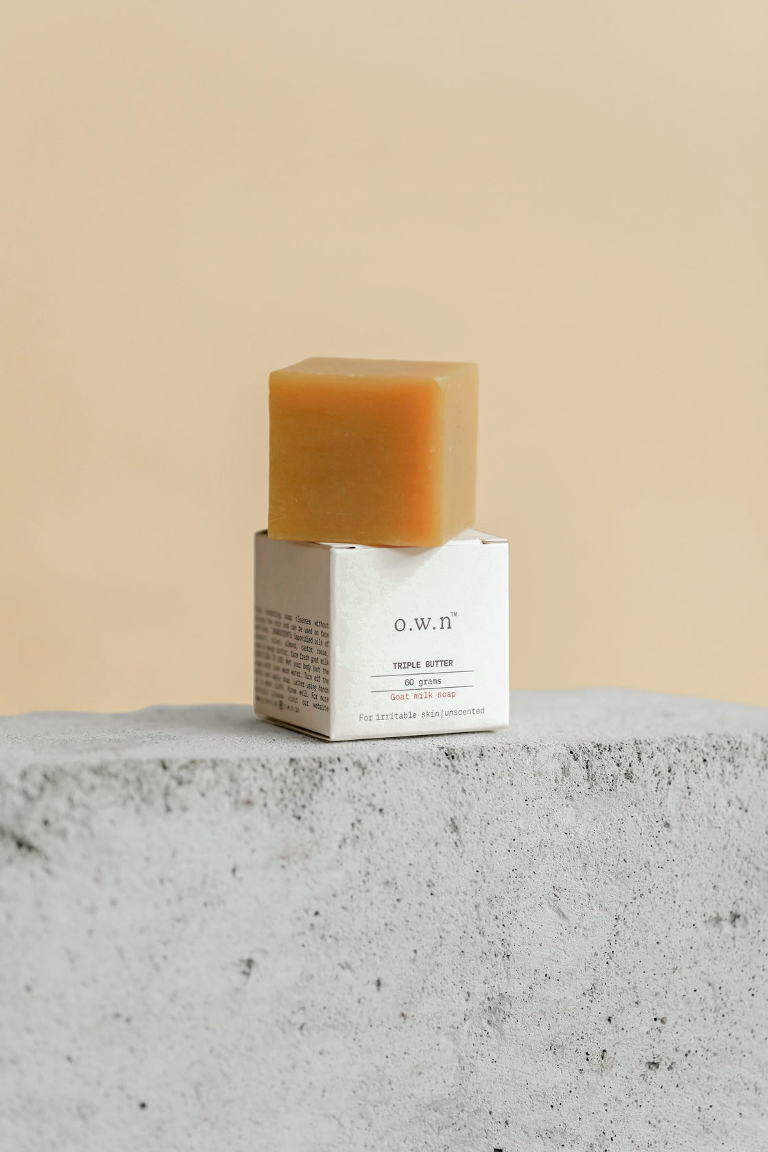 Triple Butter soap is our original unscented creamy soap made for babies. We have increased the amount of butters in this soap and have avoided the use of colours and essential oils. This hydrating goat milk soap bar cleanses and nourishes the baby’s skin without drying it.