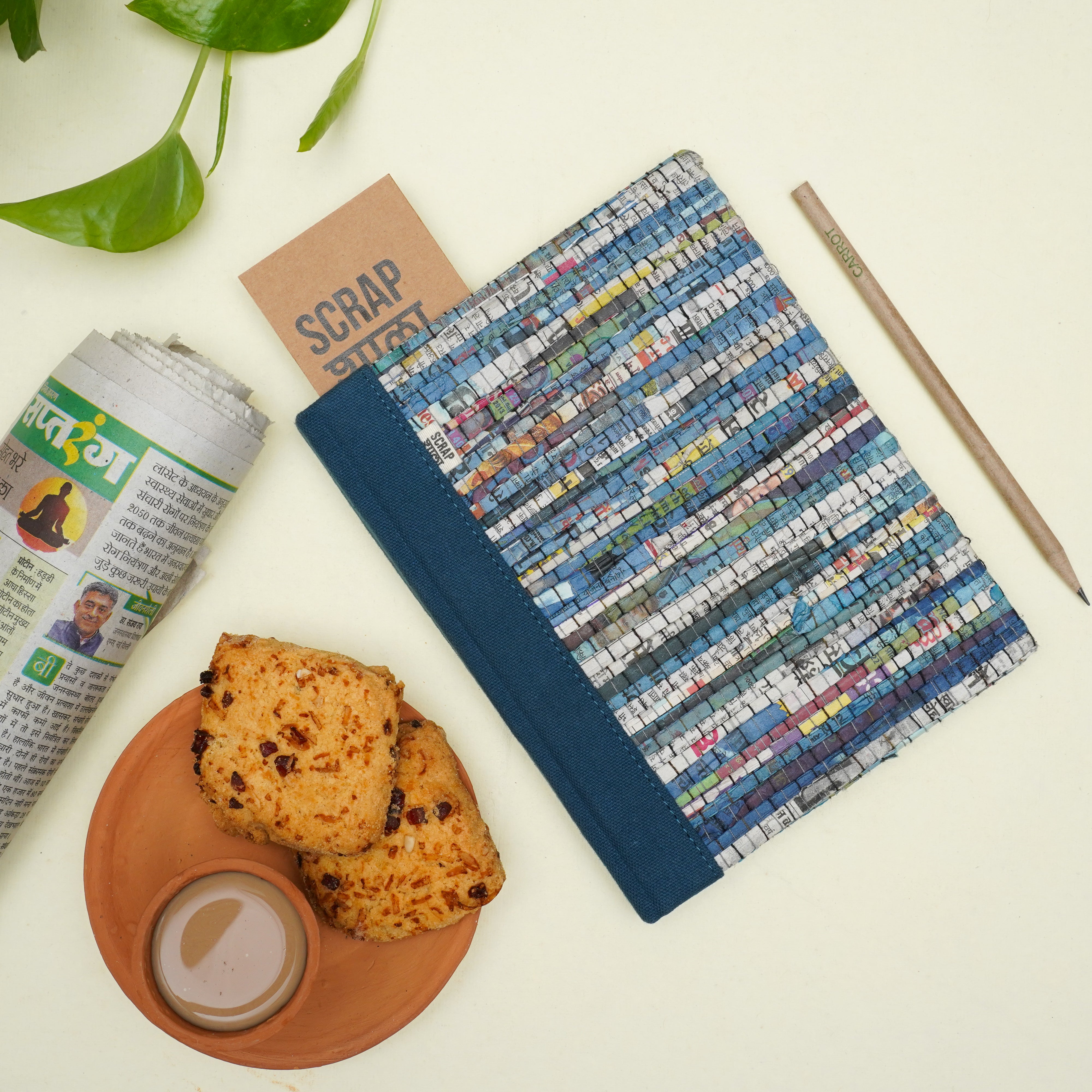 Upcycled Corporate Diary | Blue hardbound Cover | 100 recycled paper | Handcrafted | Scrapshala