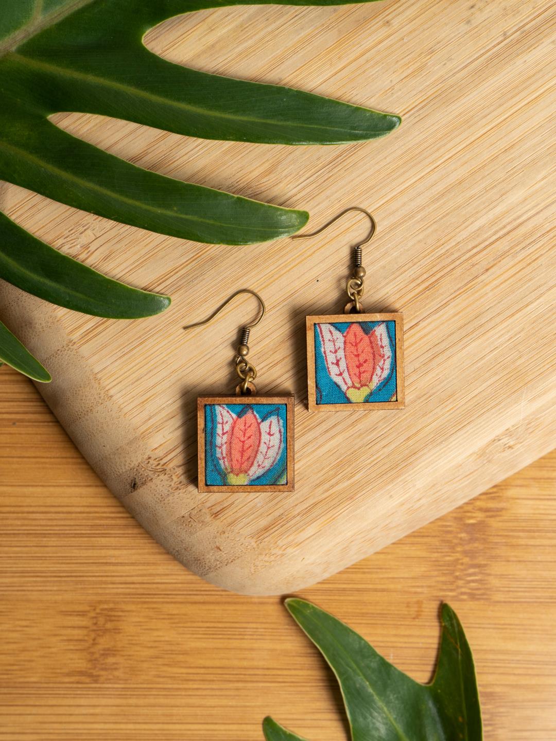 Whe Handcrafted Floral Repurposed Wood Frame earrings