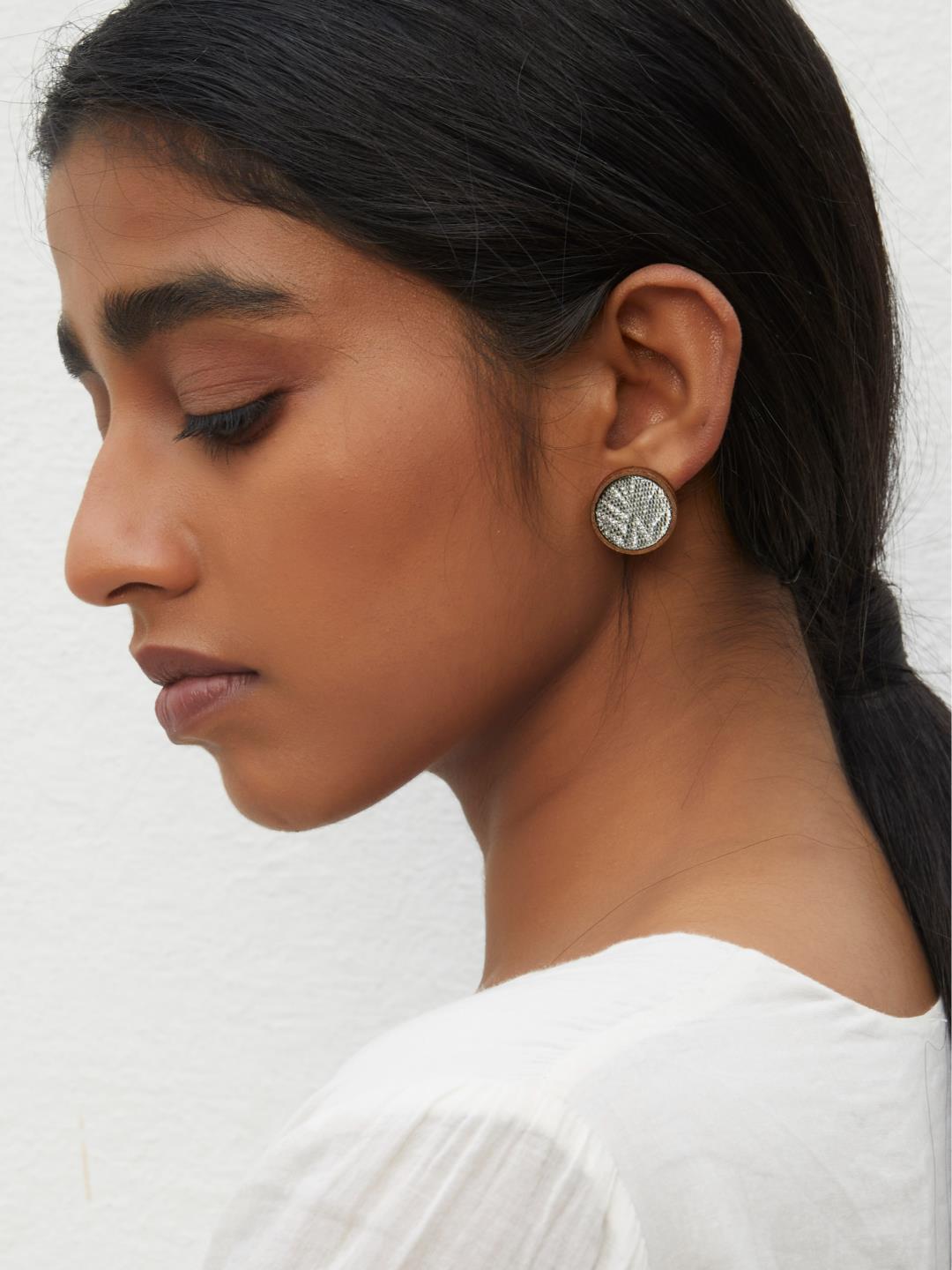 This handcrafted earring is made using Fabric, Repurposed wood